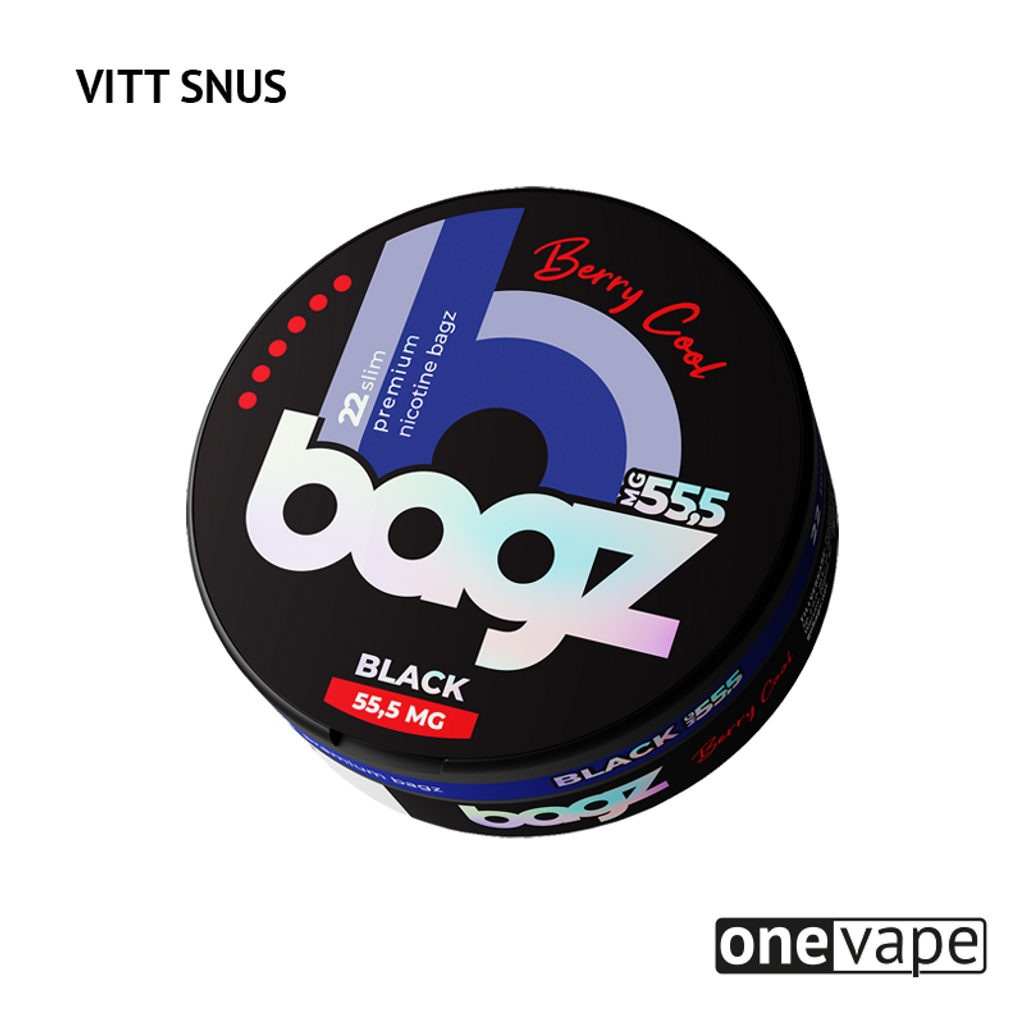 Berry Cool Slim Black från Bagz är ett super starkt vitt snus i slim-formad med smak av blåbär och mint.