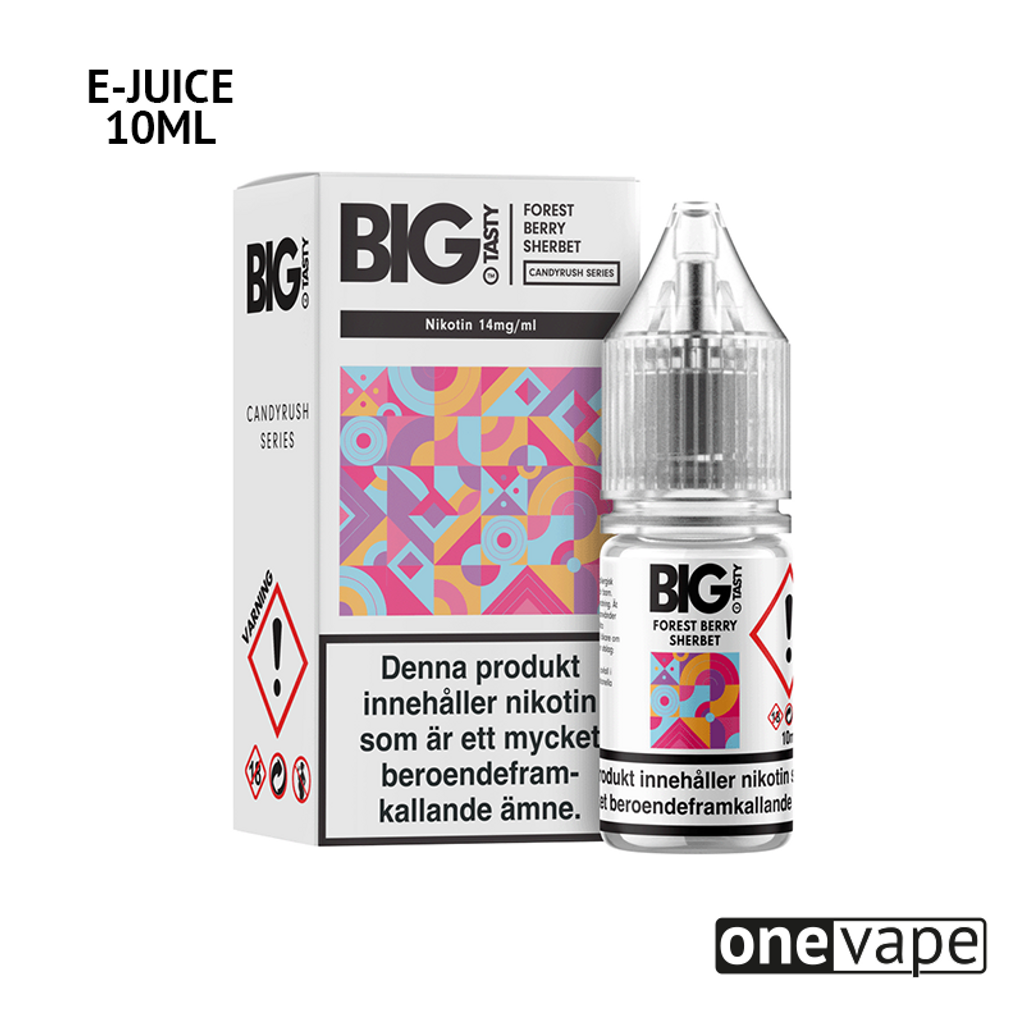10ml Nic Salt E-juice 14mg från Big Tasty med smak av skogsbär och sorbet glass.