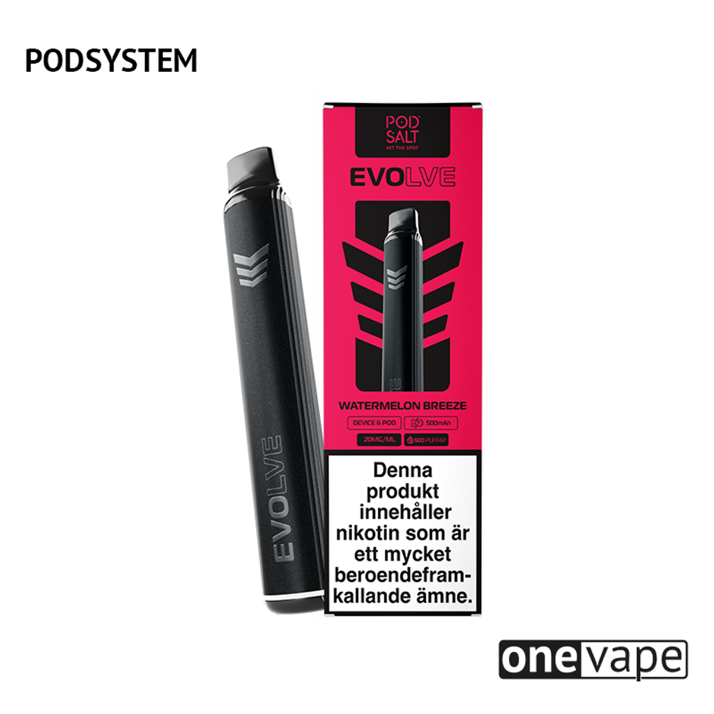 Podsystem med 1st 500mAh batteri och 1st förfylld Evolve Mesh Pod med smak av vattenmelon och cooling.