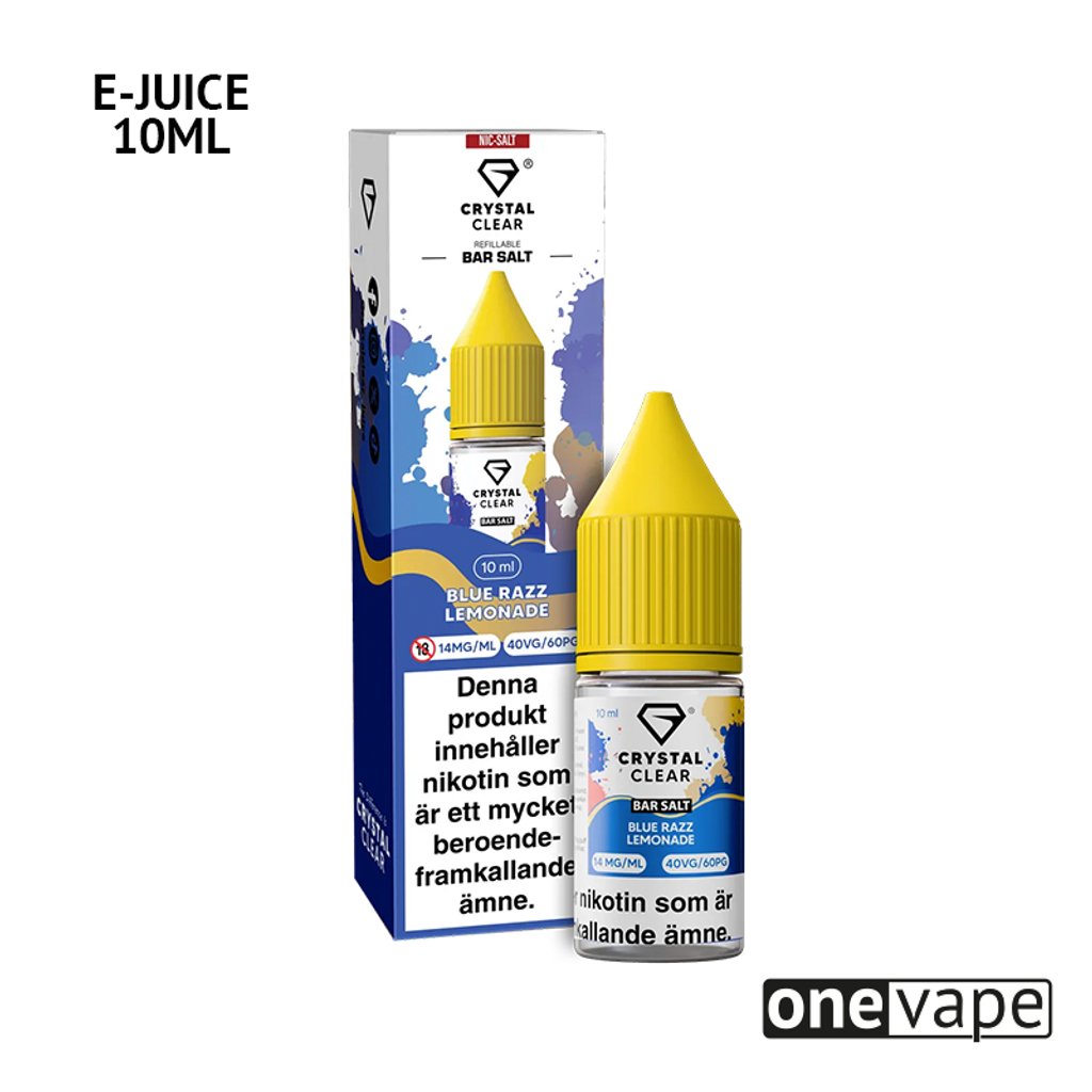 10ml E-juice med 14mg Nicsalt från Crystal Clear med smak av blå hallon och lemonad.