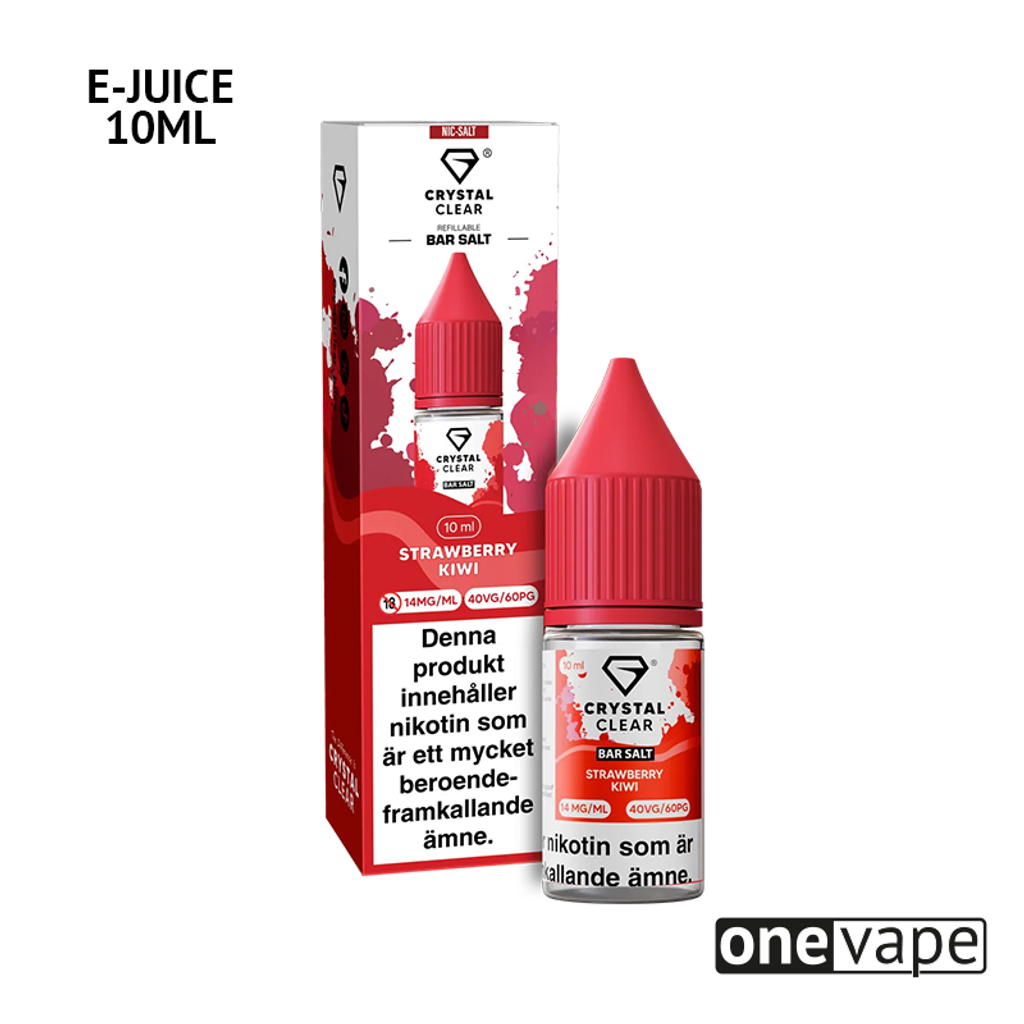 10ml E-juice med 14mg Nicsalt från Crystal Clear med smak av jordgubb och kiwi.