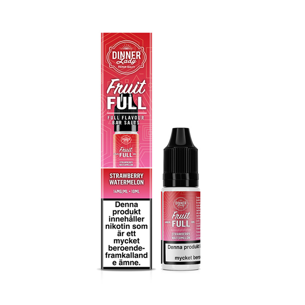 10ml Nicsalt E-juice 14mg från Dinner Lady med smak av jordgubb och vattenmelon.