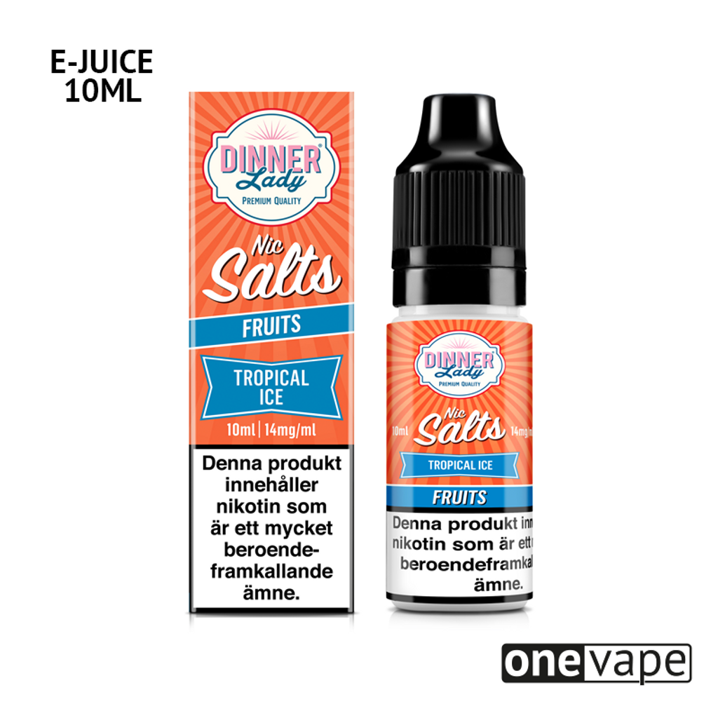 10ml E-juice med 14mg Nicsalt från Dinner Lady med smak av tropiska frukter och cooling.