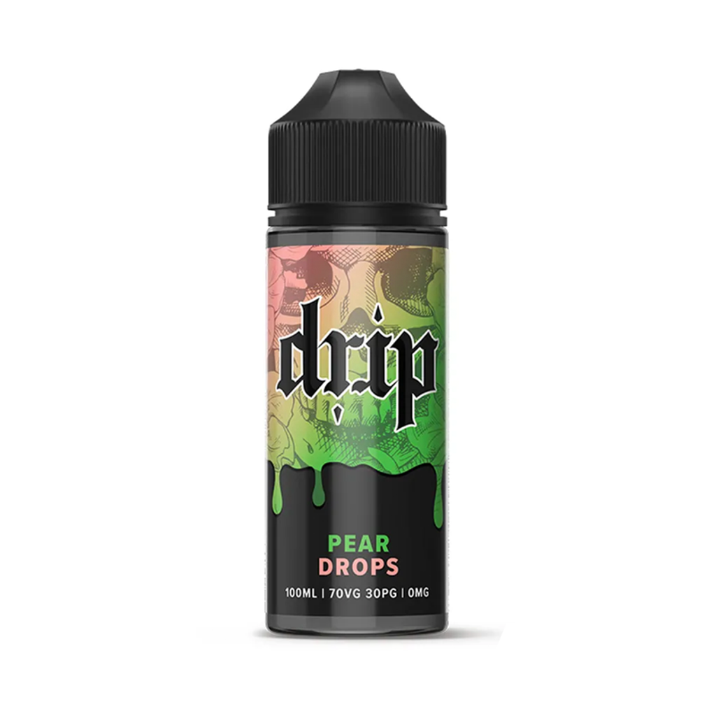 Drip Pear Drops 100ml shortfill med smak av klassiskt pärongodis. En söt och fruktig e-juice med tydlig päronkaraktär och godistoner, levererad i 120 ml flaska med plats för nikotinshots