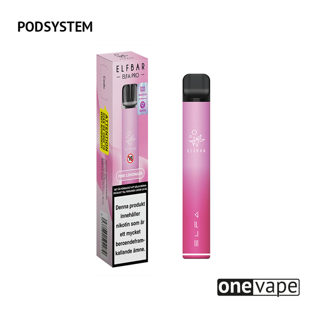 Podsystem med 1st rosa 500mAh batteri och 1st förfylld Elfa Mesh Pod med smak av rosa lemonad.