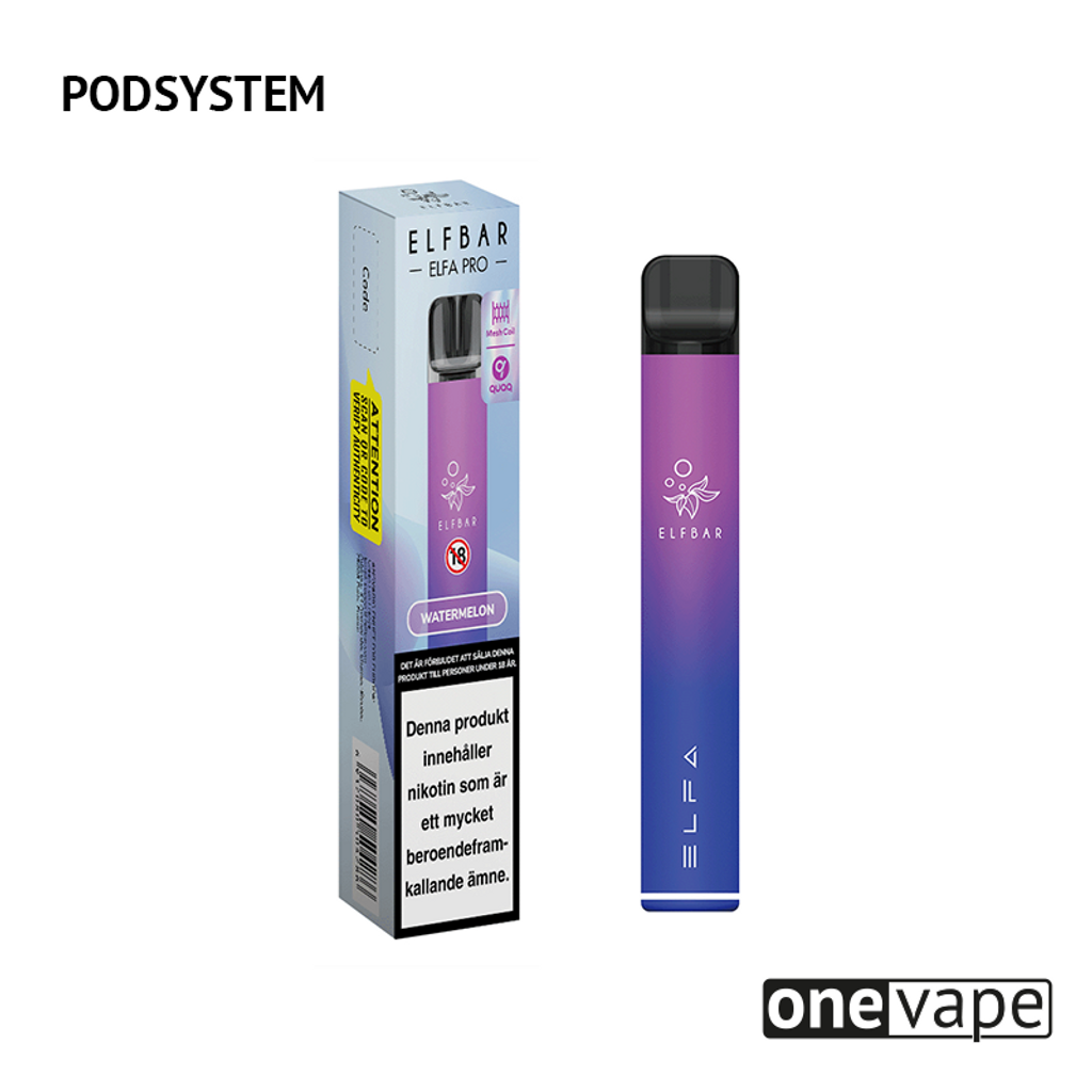 Elfa Podsystem från ElfBar är ett klockrent alternativ till traditionella engångsvapes. Elfa Podsystem är en återanvändningsbar e-cigarett som har ett internt, uppladdningsbart batteri på 500mAh och använder sig utav förfyllda e-juice pods som du kan byta ut efter smak och preferens. Elfa Pod kit kommer i en smidig soft touch-design som är bekväm att hålla i, samt är byggd i en hållbar metallkonstruktion som tål mer robust användning jämfört med vanliga e-cigaretter. Så om du är van att använda e-cigaretter på språng eller under en fysisk aktivitet så är Elfa Mesh Podsystem något för dig!