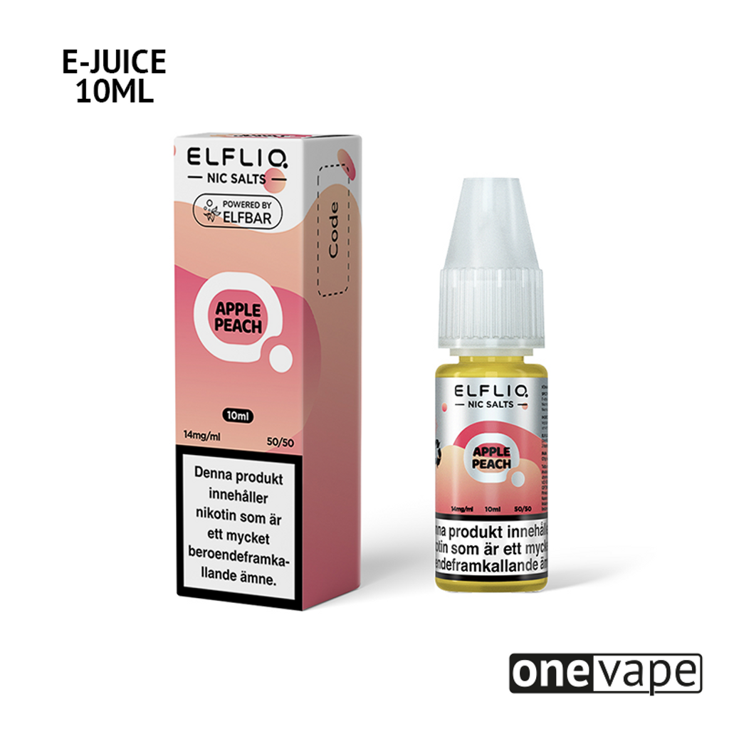 10ml E-juice med 14mg Nicsalt från ElfLiq med smak av äpple och persika.