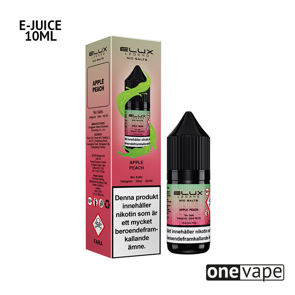 10ml E-juice med 14mg Nicsalt från Elux Legend med smak av äpple och persika.