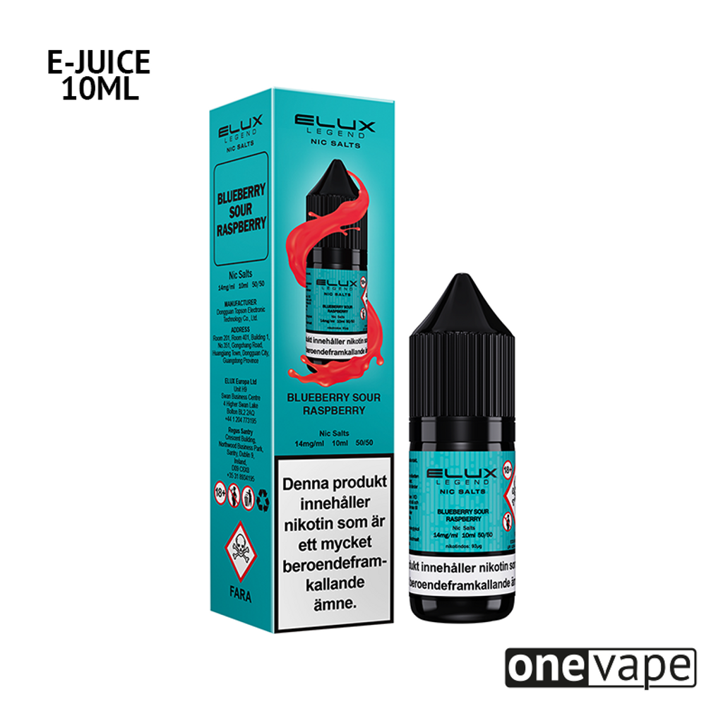 10ml E-juice med 14mg Nicsalt från Elux Legend med smak av blåbär och sura hallon.