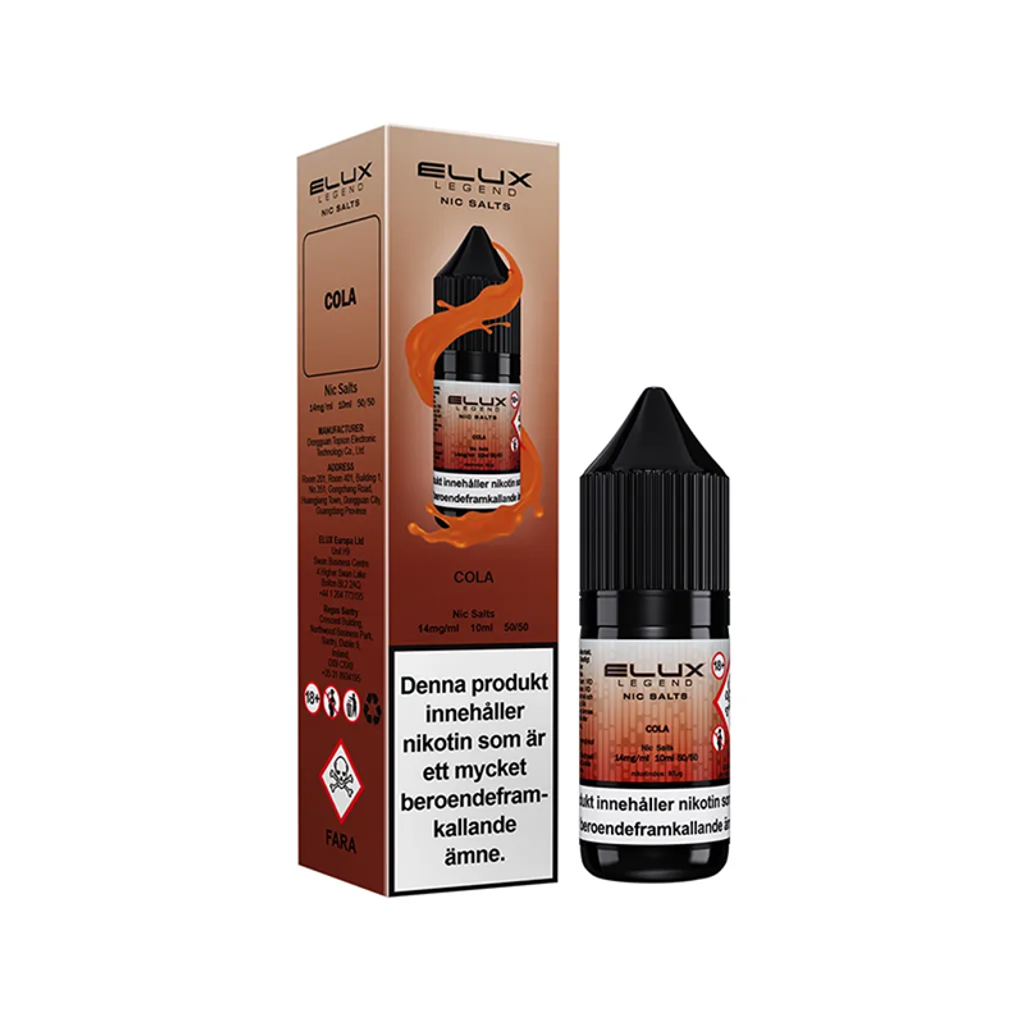 10ml E-juice med 14mg Nicsalt från Elux Legend med smak av cola