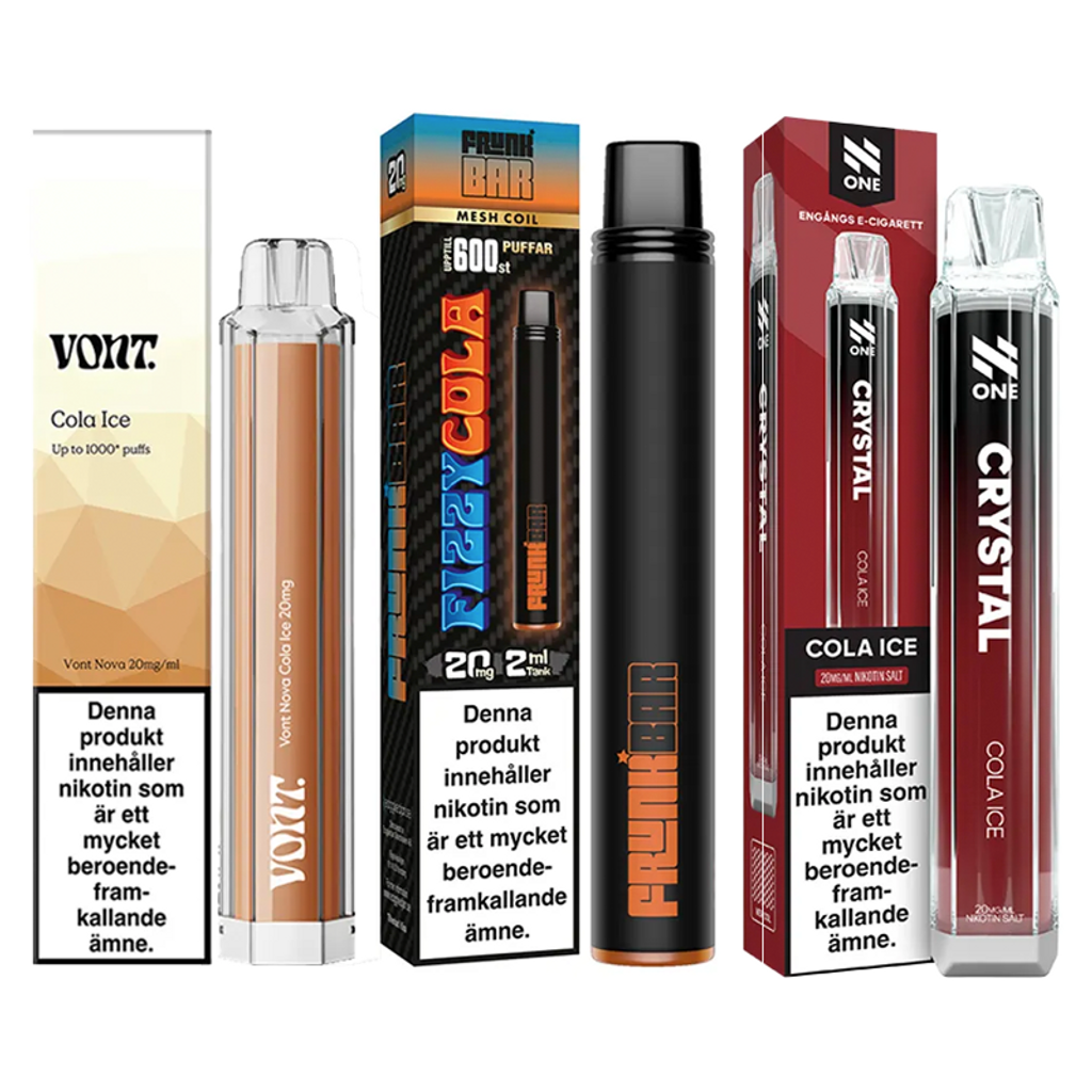 Paket med tre av våra populäraste engångsvapes, med smak av cola. 20mg