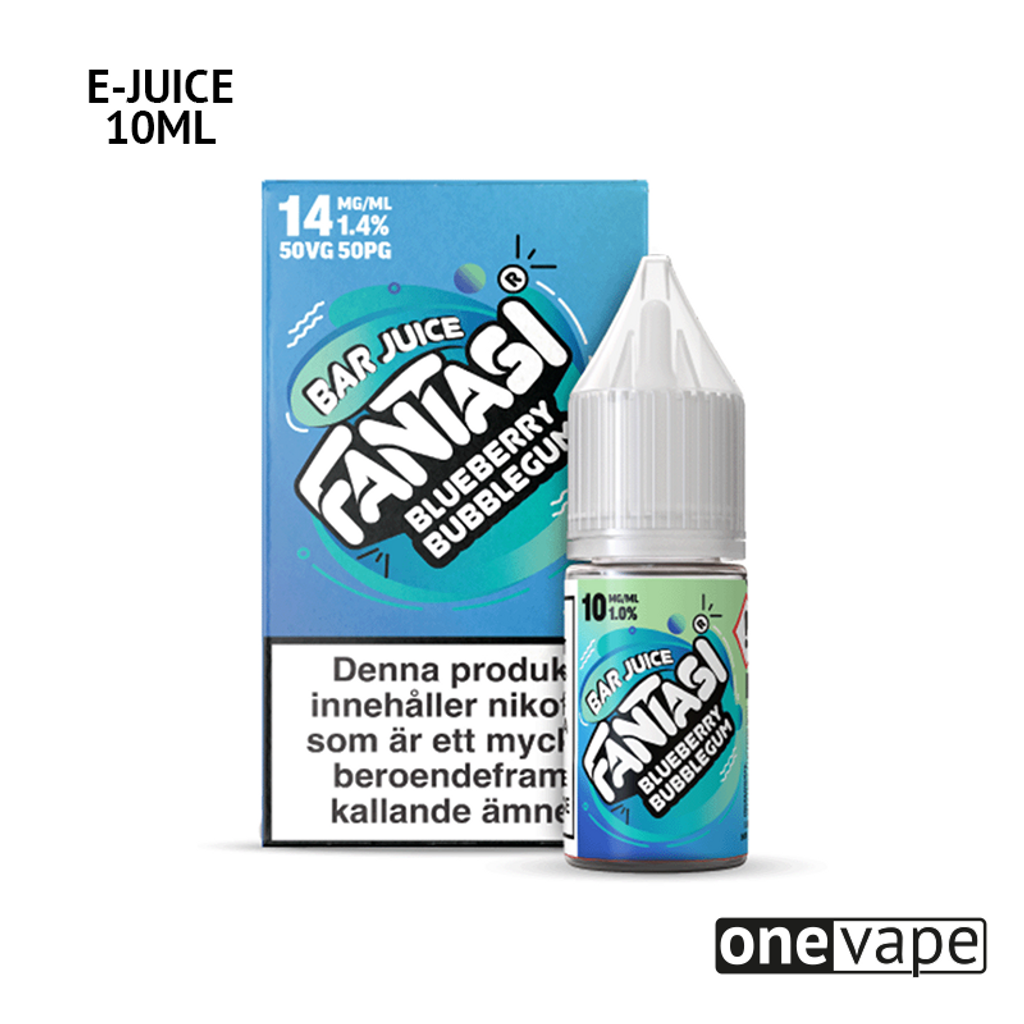 Smak av blåbär och tuggummi. 10ml e-juice, 14mg nikotin.