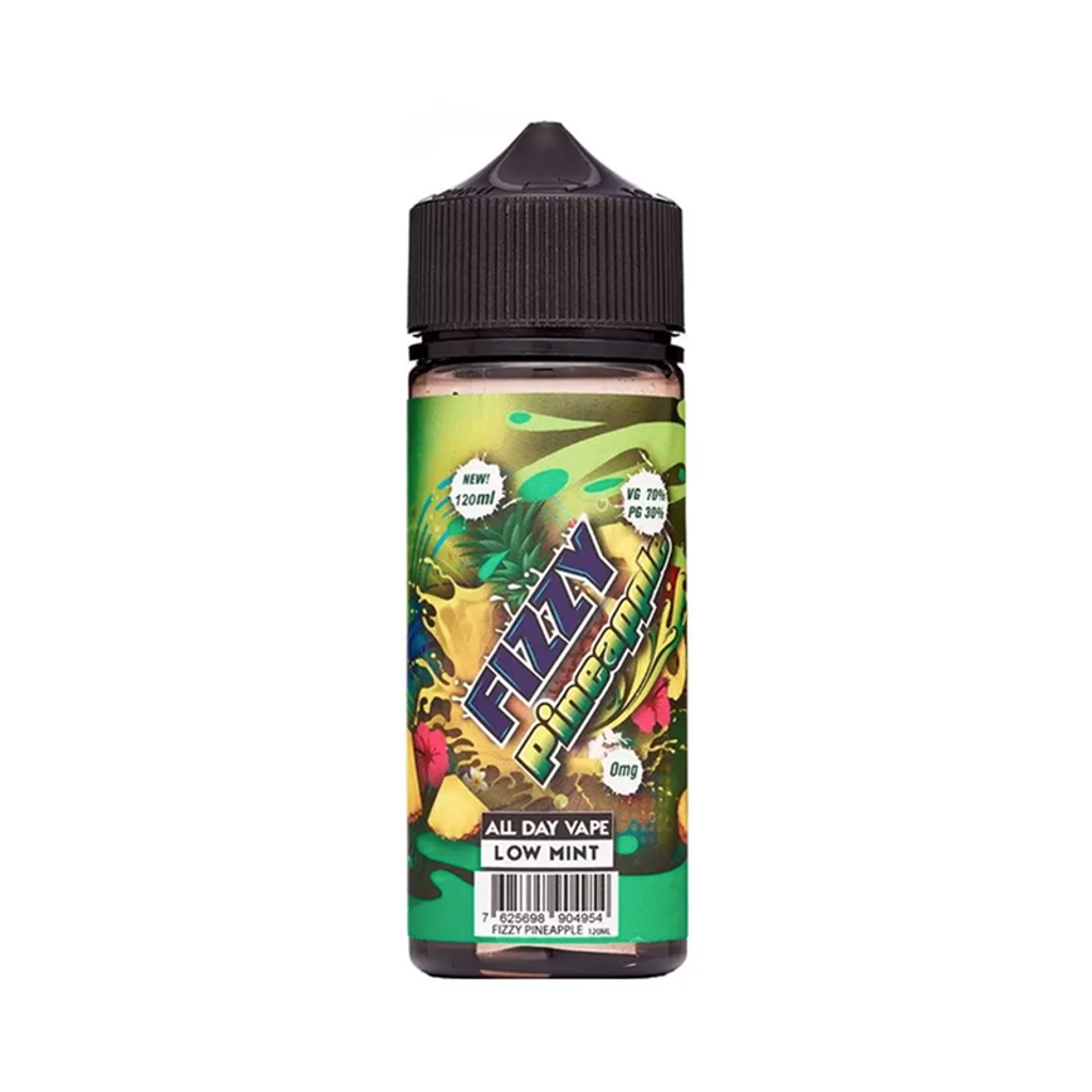 Fizzy Pineapple 100ml shortfill e-juice med smak av ananas och cooling. En tropisk och syrlig smakprofil med frisk sötma och svalkande avslut. Levereras i 120 ml flaska med plats för nikotinshots – för dig som vill ha en uppfriskande ananasvape