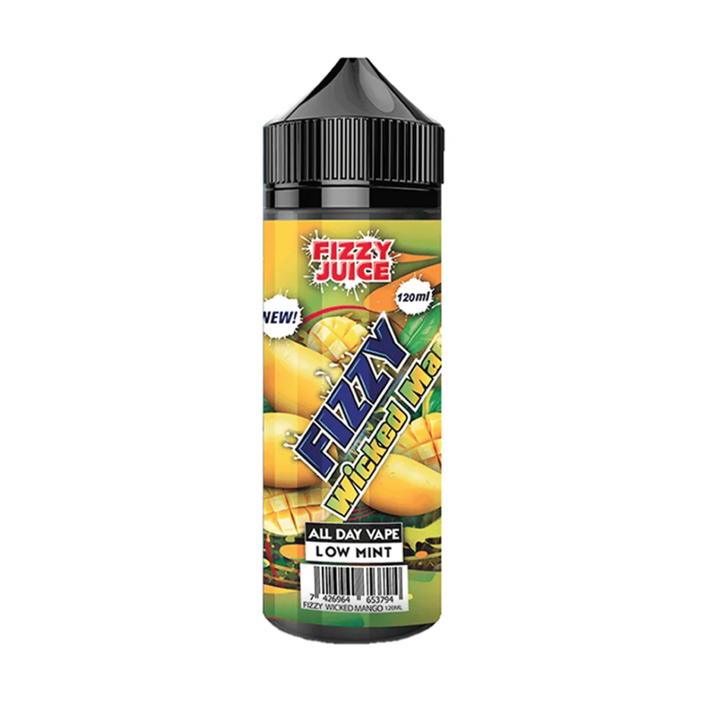 Fizzy Wicked Mango 100ml shortfill e-juice med smak av mango. En söt och intensiv smakprofil med tydlig tropisk karaktär. Levereras i 120 ml flaska med plats för nikotinshots – för dig som vill ha en ren mangosmak med extra tryck