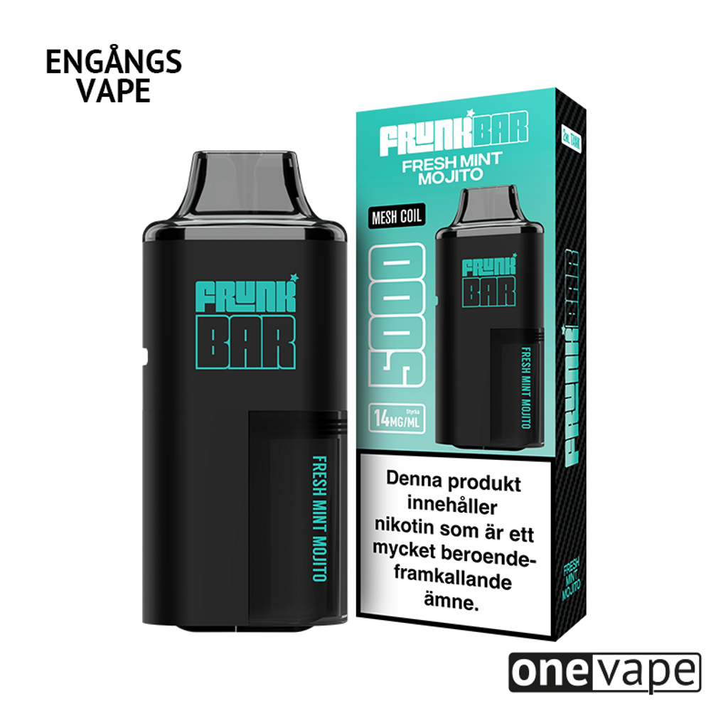Frunk 5000 Engångsvape 14mg med smak av mint och mojito.