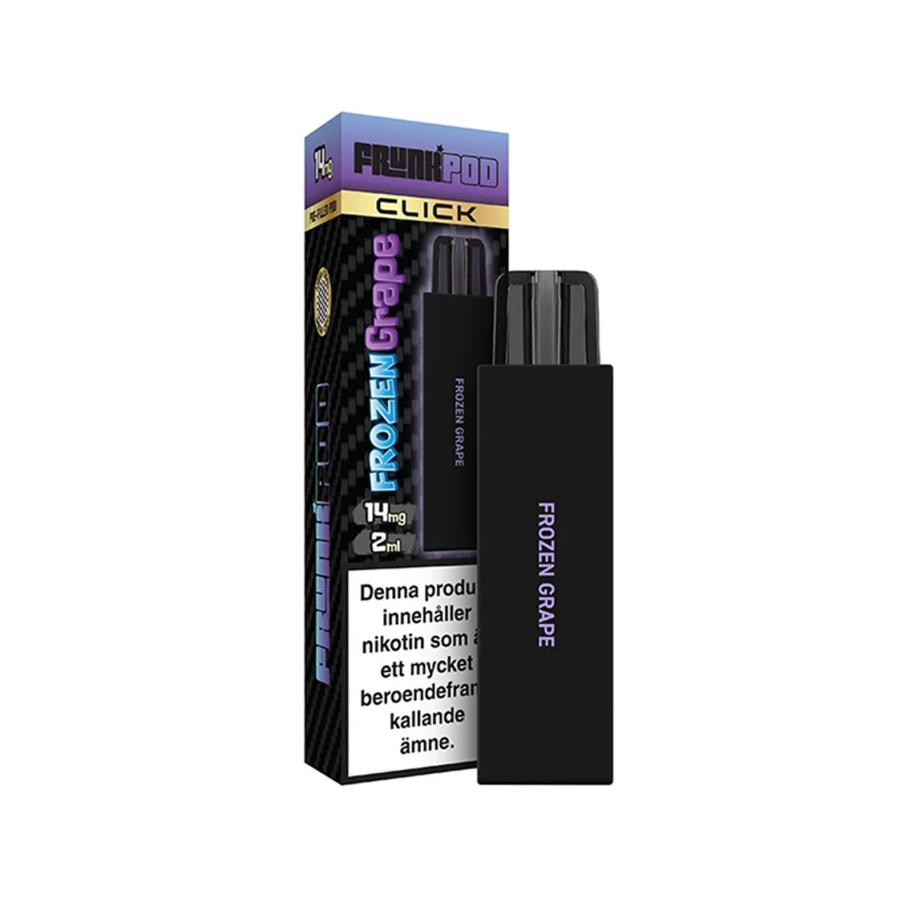 Frunk Pod Click Mesh – Frozen Grape är en förfylld pod med smak av vindruvor. Avsedd att användas tillsammans med ett kompatibelt Click Mesh-batteri (säljs separat). Podden klickas på plats och aktiveras vid inhalering. Produkten saknar knappar och inställningar.