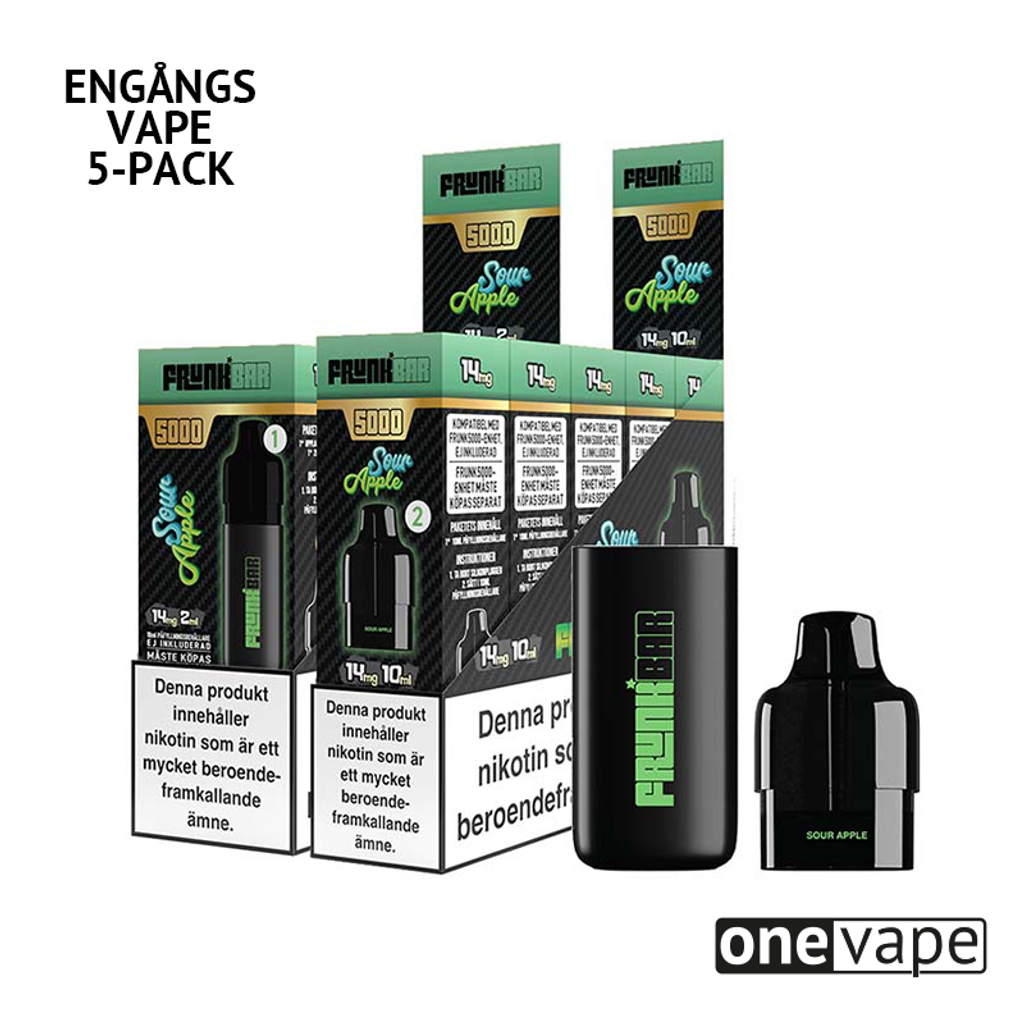 Frunk 5000 Engångs Vape - Sour Apple (5-Pack)
