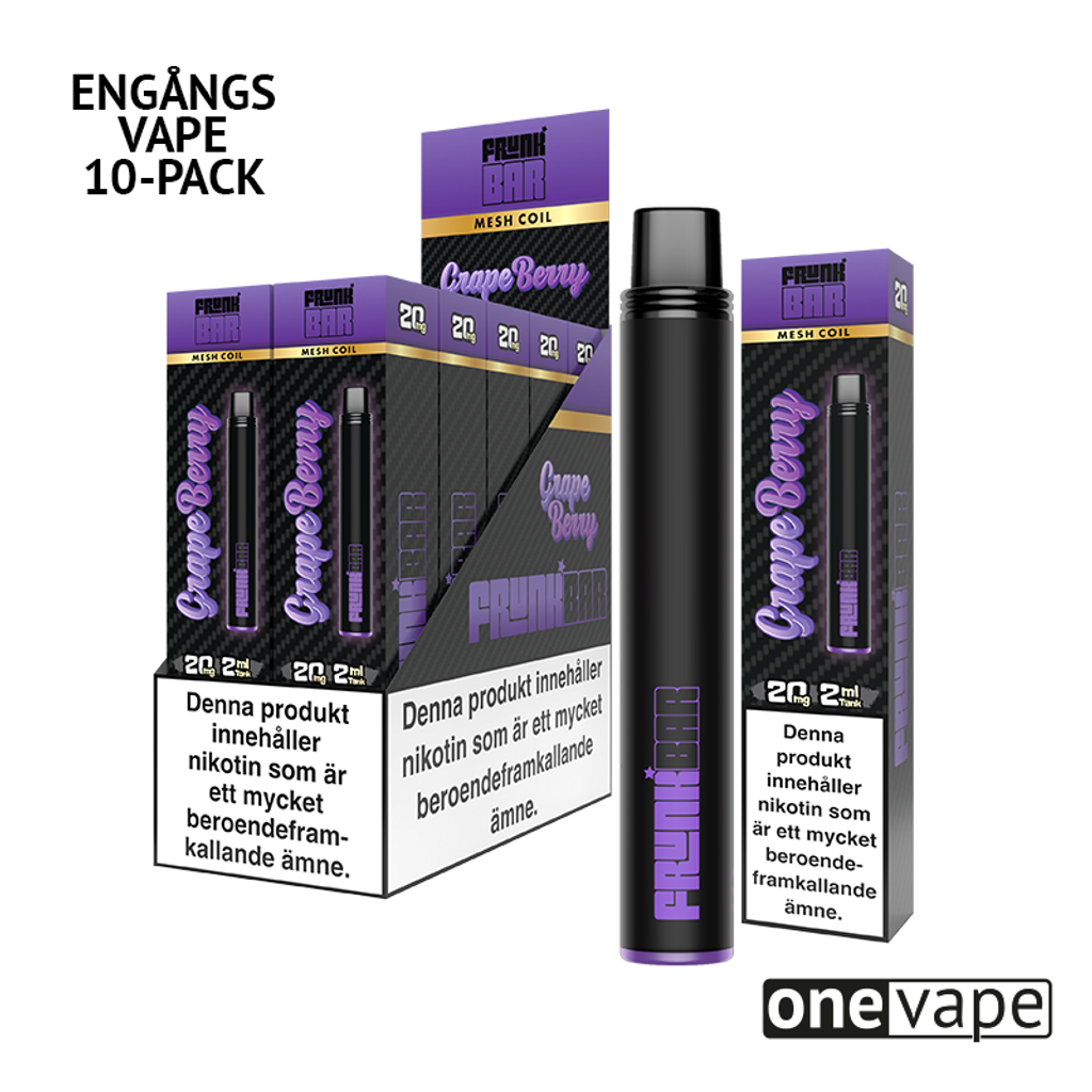Beskrivning av Frunk Bar Mesh Engångs Vape - Grape Berry (10-Pack)