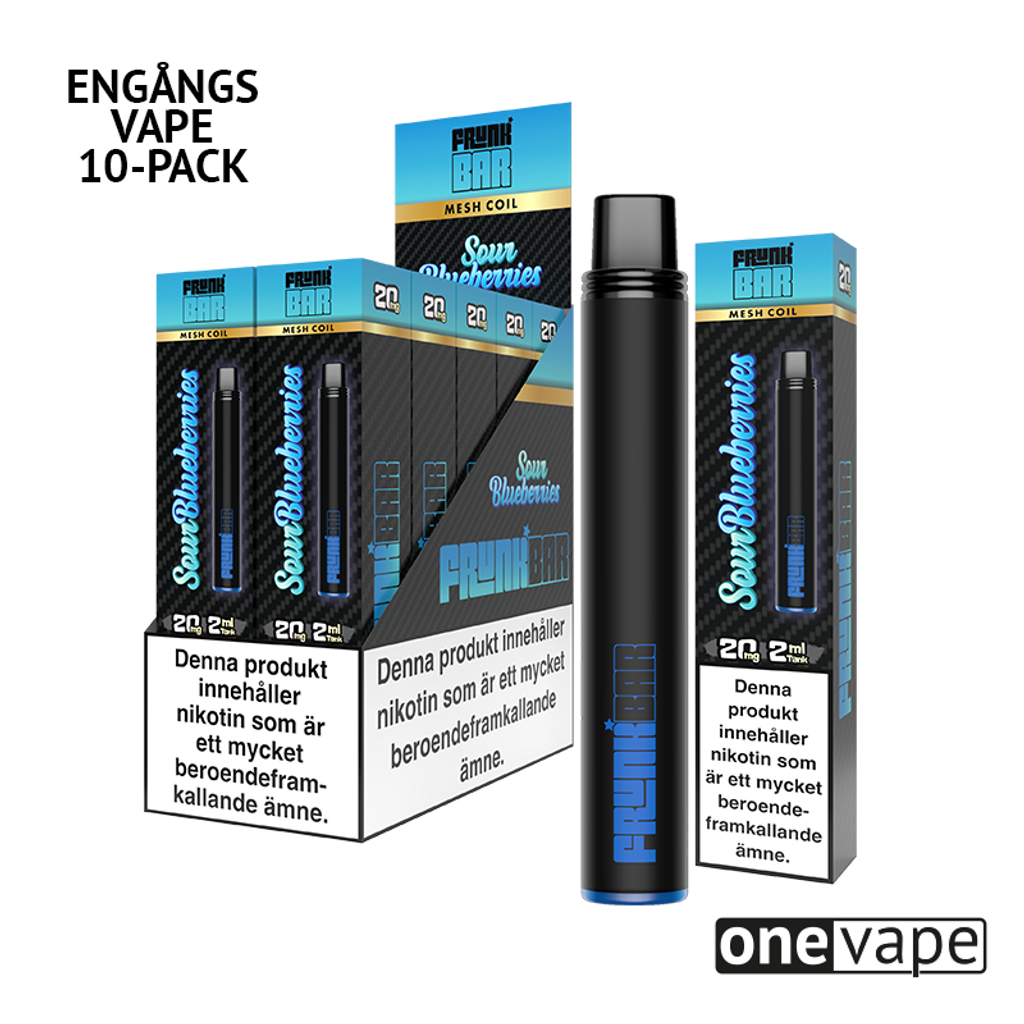 Beskrivning av Frunk Bar Mesh Engångs Vape - Sour Blueberries (10-Pack)