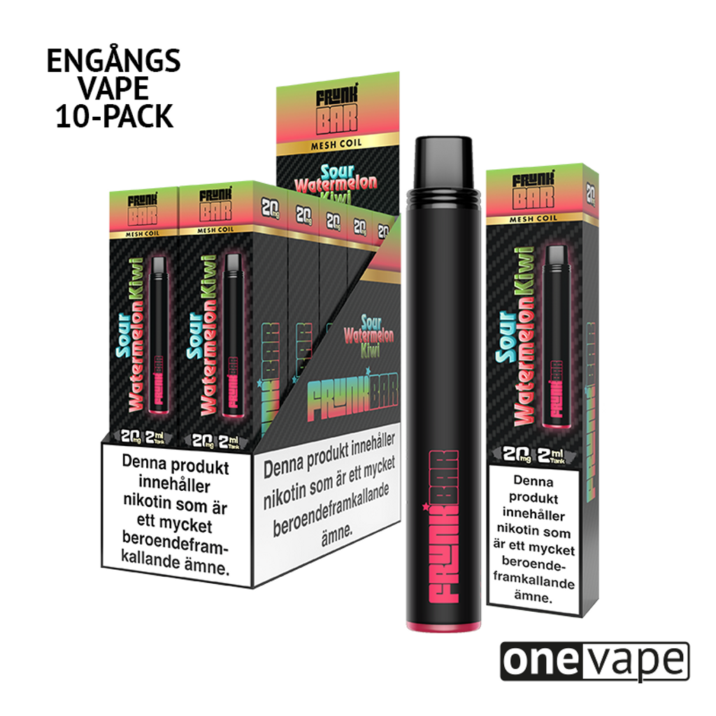 Beskrivning av Frunk Bar Mesh Engångs Vape - Sour Watermelon Kiwi (10-Pack)