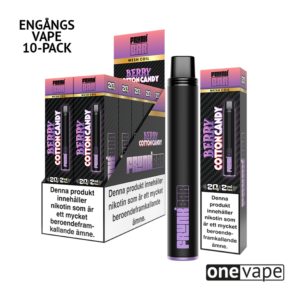 Beskrivning av Frunk Bar Mesh Engångs Vape - Berry Cotton Candy (10-Pack)