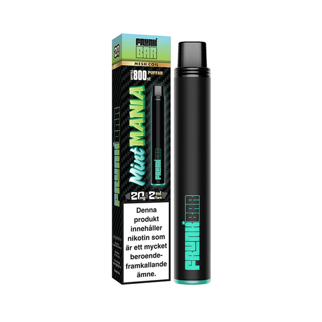 Frunk Bar Mesh - Mint Mania är en engångsvape som smakar mint. Det är en engångsvape med Mesh Coil-teknik.