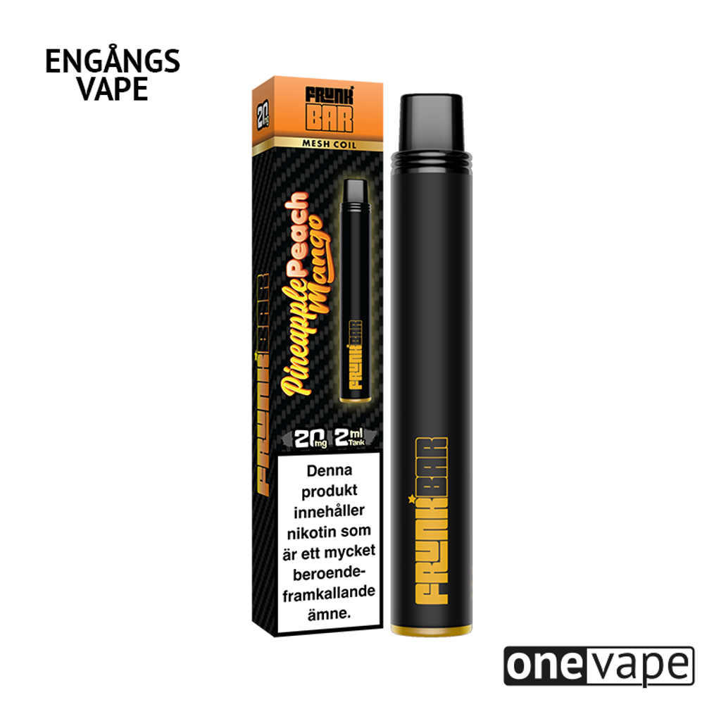 Frunk Bar Engångsvape 20mg med smak av ananas, persika och mango.