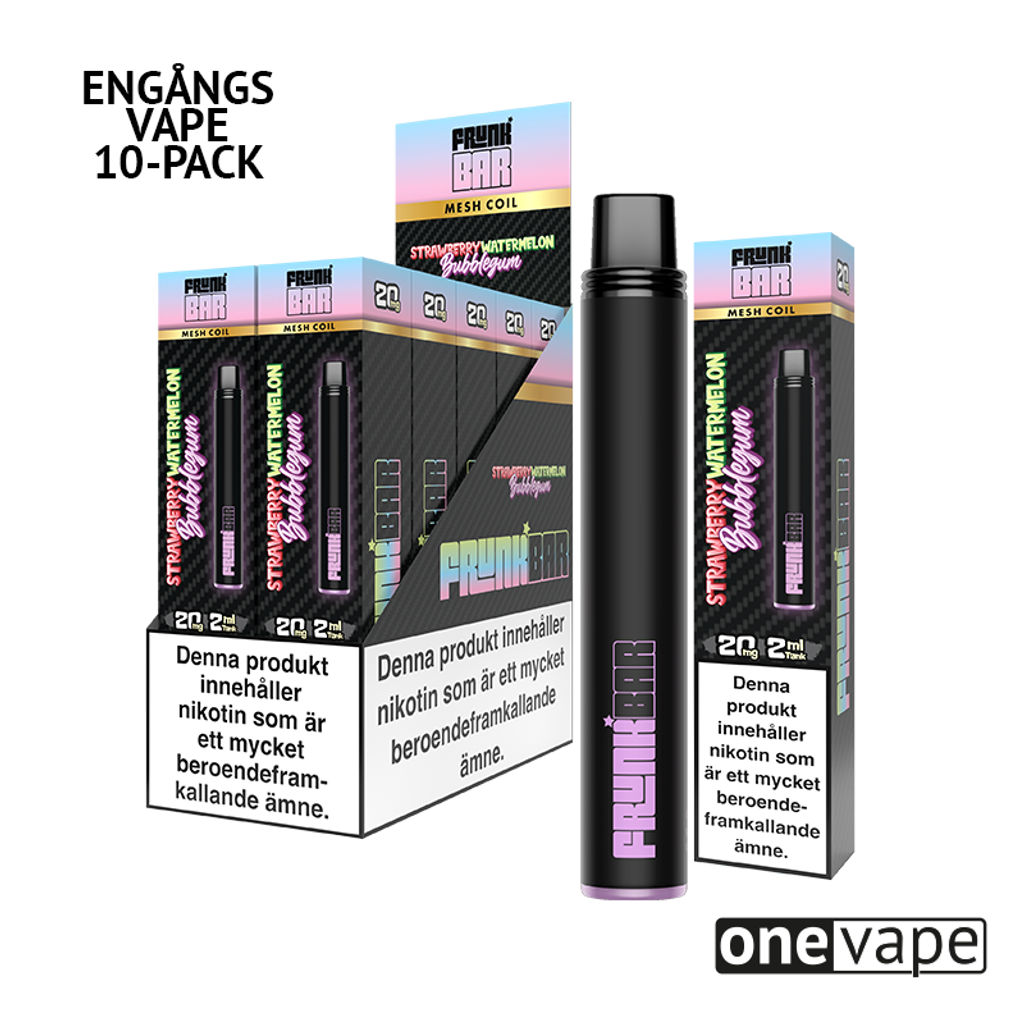 Beskrivning av Frunk Bar Mesh Engångs Vape - Strawberry Watermelon Bubblegum (10-Pack)