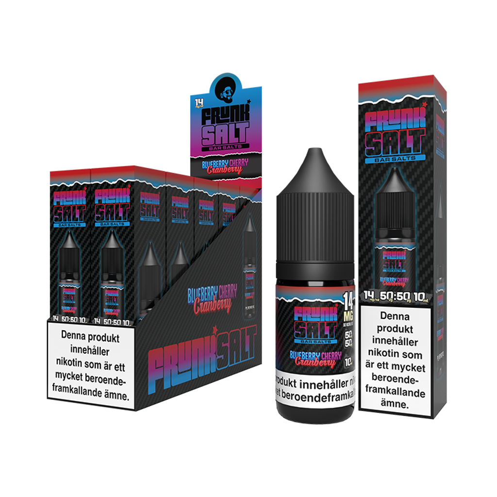 10-Pack E-juice 14mg från Frunk Salt med smak av blåbär, körsbär och tranbär.