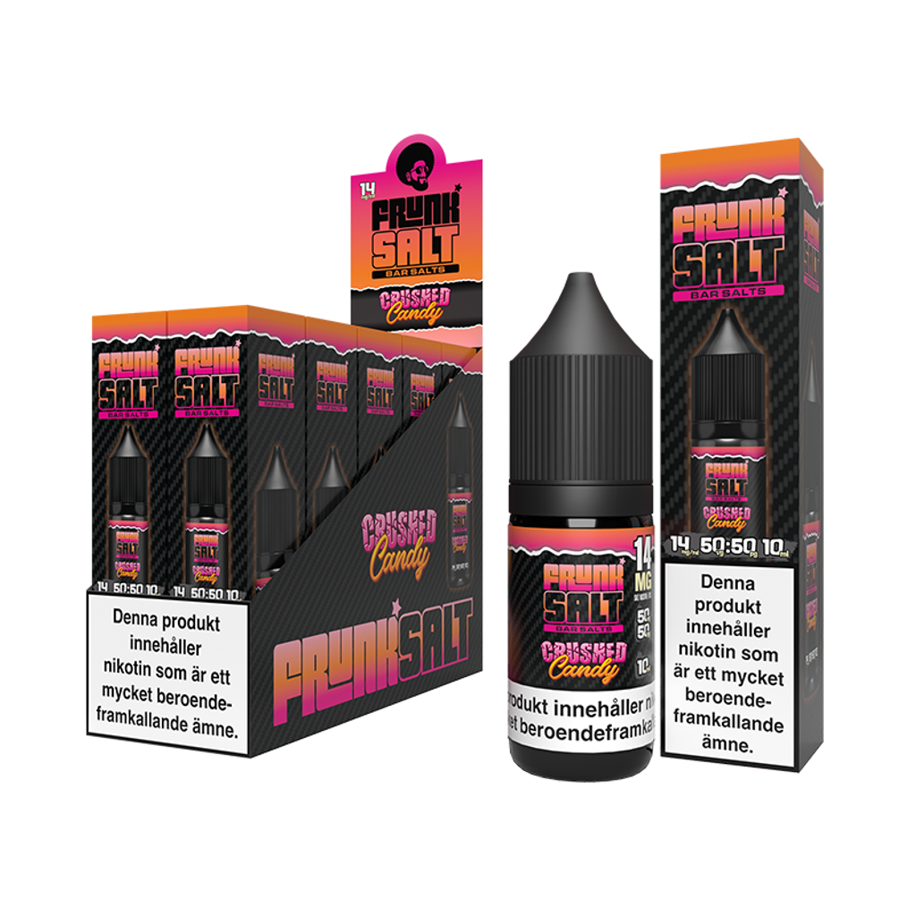 10-Pack E-juice 14mg från Frunk Salt med smak av krossat godis.