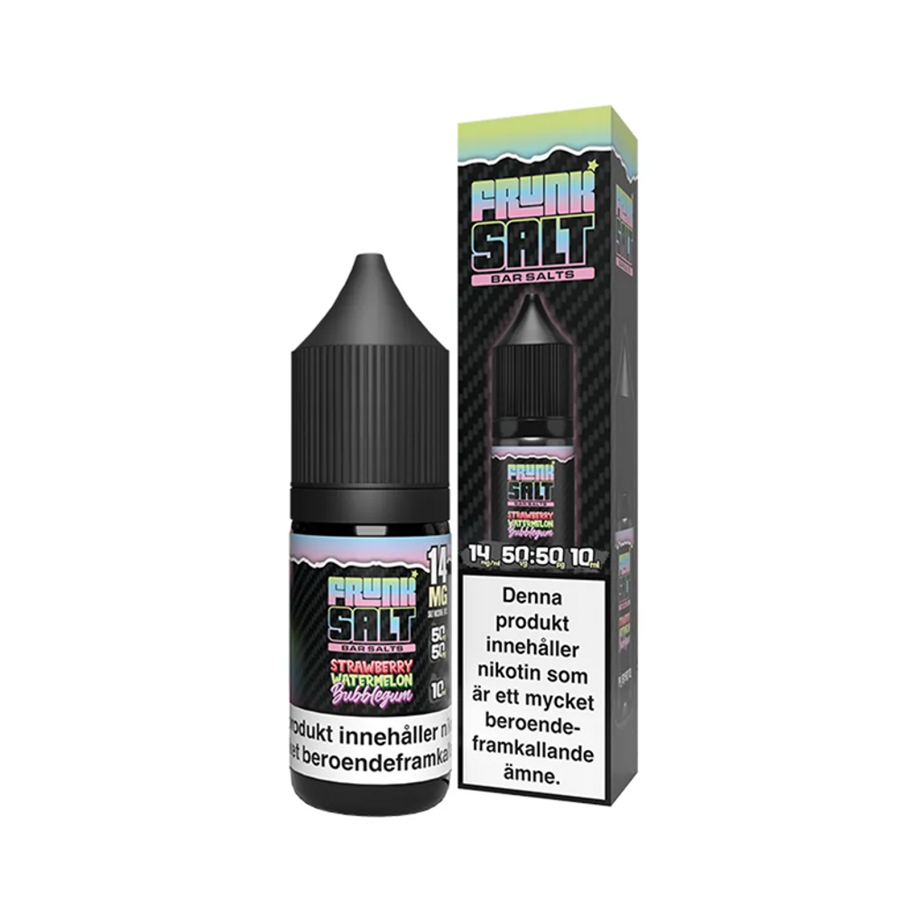 Frunk Bar Salt E-Juice – Strawberry Watermelon Bubblegum är en e-juice med smak av jordgubb, vattenmelon och tuggummi, framtagen för att återskapa smaken från Frunk Bar engångsvapes i ett refillformat.