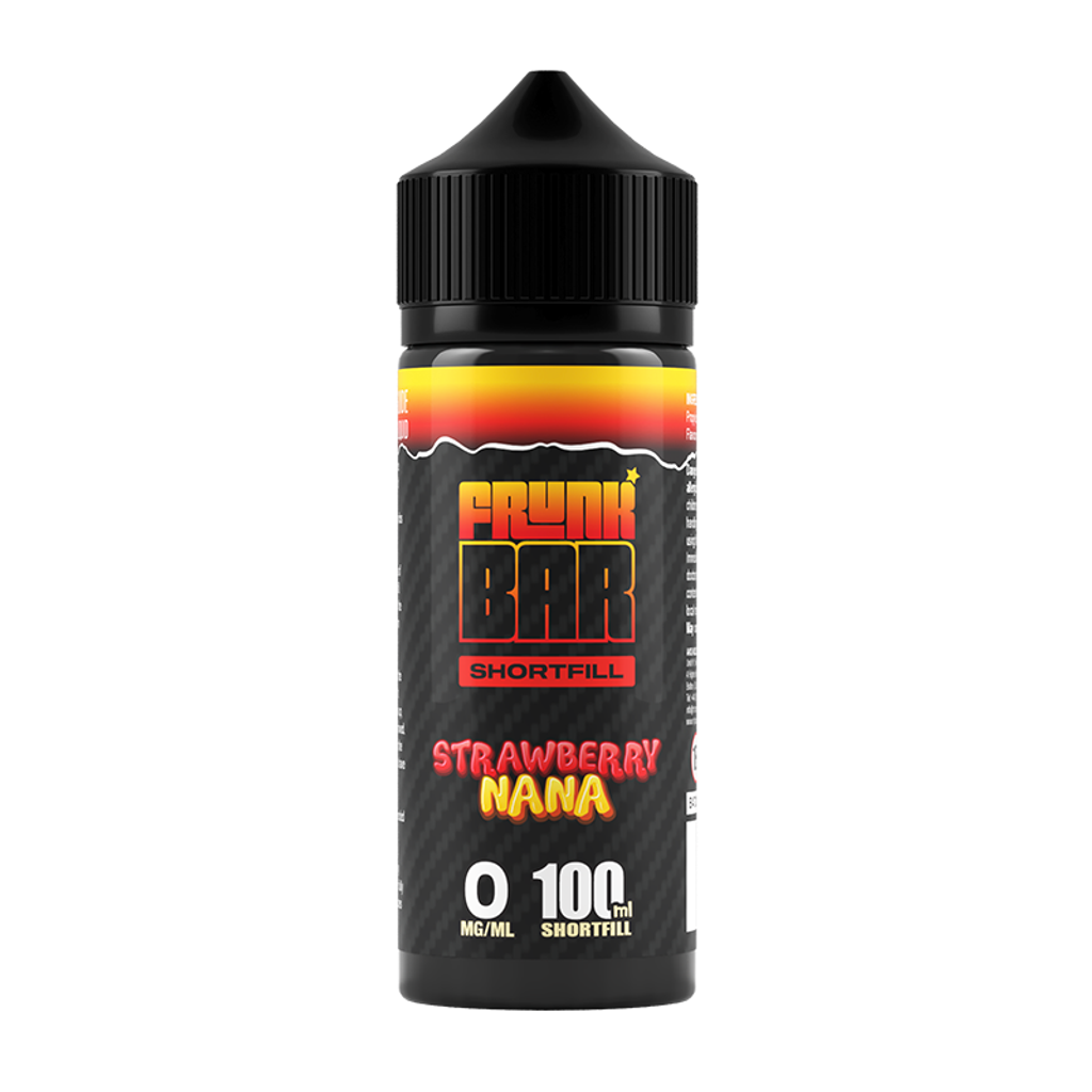 100ml Shortfill 0mg från Frunk med smak av jordgubb och banan.