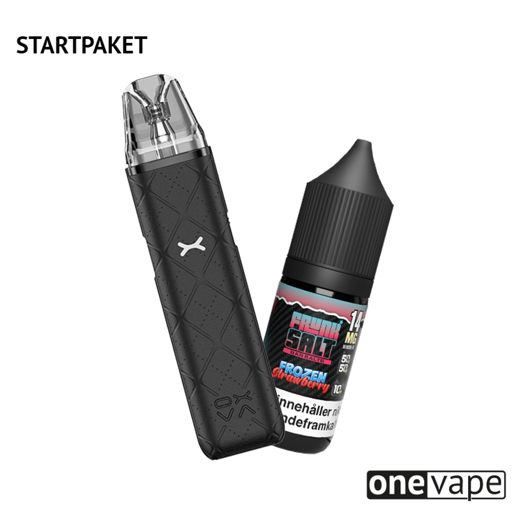 Frunk 5000 har försvunnit från marknaden och många söker efter en ersättare. Här på OneVape.se har vi satt ihop det perfekta startpaketet med smaker som påminner om din tidigare Frunk 5000-favorit. Med vape från OXVA, e-juice från Frunk Salt så räcker detta startkit dig lika länge som Frunk 5000, om inte längre! Det enda du behöver göra är att fylla podden med e-juice och börja vejpa, när e-juicen börjar ta slut fyller du enkelt på med mer e-vätska. Om det börjar smaka bränt är podden förbrukad, och du sätter enkelt in en ny, fyller på med e-juice och puffar på som vanligt! Svårare än så blir det inte. Ta steget från engångsvape idag!