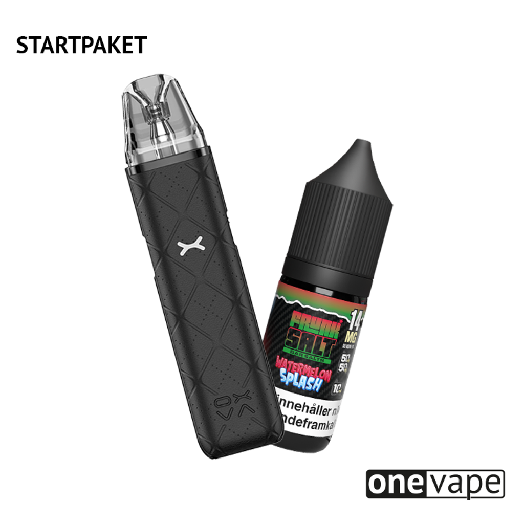 Frunk 5000 har försvunnit från marknaden och många söker efter en ersättare. Här på OneVape.se har vi satt ihop det perfekta startpaketet med smaker som påminner om din tidigare Frunk 5000-favorit. Med vape från OXVA, e-juice från Frunk Salt så räcker detta startkit dig lika länge som Frunk 5000, om inte längre! Det enda du behöver göra är att fylla podden med e-juice och börja vejpa, när e-juicen börjar ta slut fyller du enkelt på med mer e-vätska. Om det börjar smaka bränt är podden förbrukad, och du sätter enkelt in en ny, fyller på med e-juice och puffar på som vanligt! Svårare än så blir det inte. Ta steget från engångsvape idag!