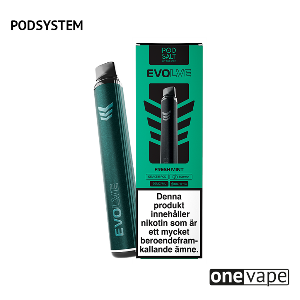 Podsystem med 1st 500mAh batteri och 1st förfylld Evolve Mesh Pod med smak av mint.