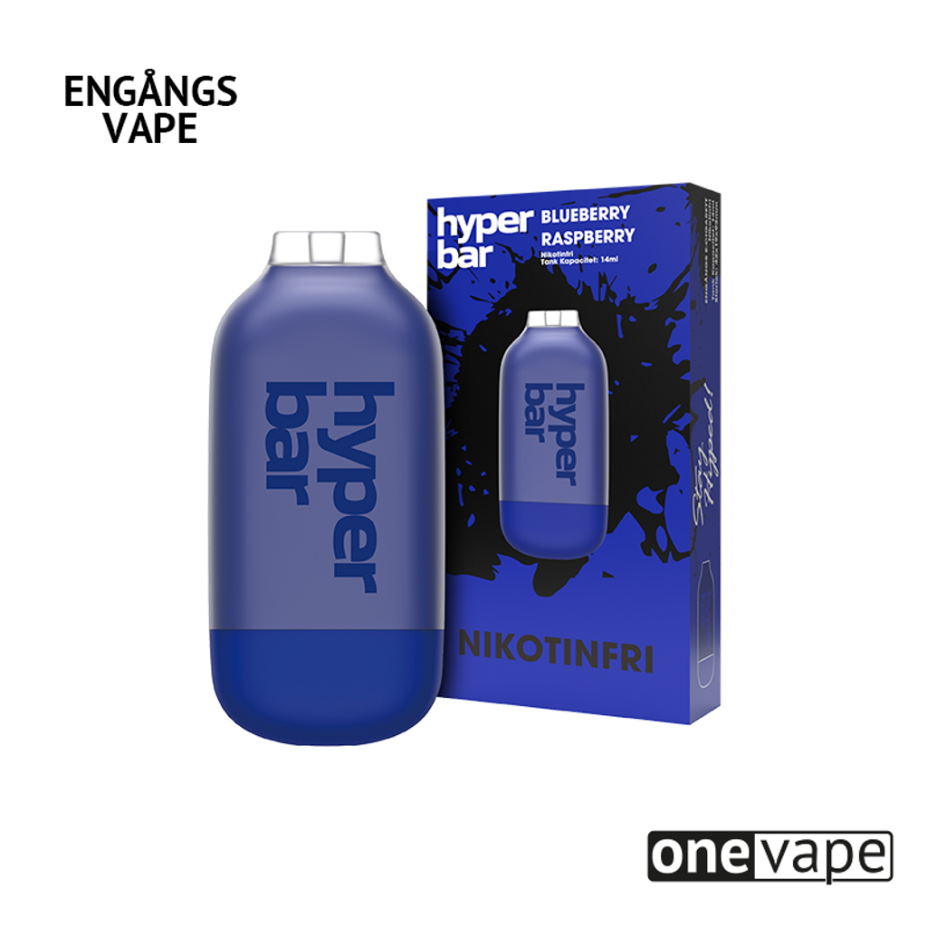 Nikotinfri Hyper Bar Zero Engångsvape med smak av blåbär och hallon.
