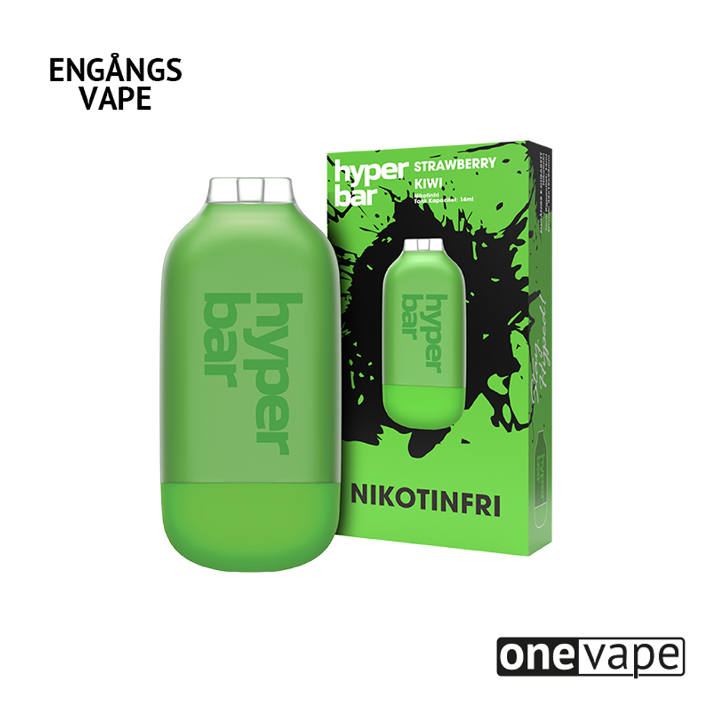 Nikotinfri Hyper Bar Engångsvape med smak av jordgubbar och kiwi.