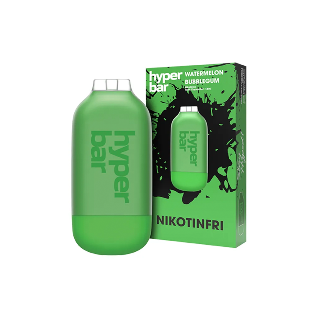 Nikotinfri Hyper Bar Zero Engångsvape med smak av vattenmelon och tuggummi.