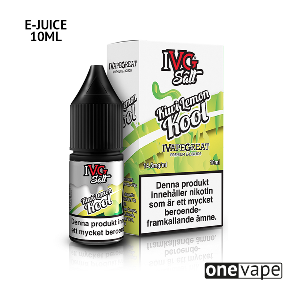 10ml E-juice med 14.5mg Nicsalt från IVG, med smak av kiwi, citron och cooling.