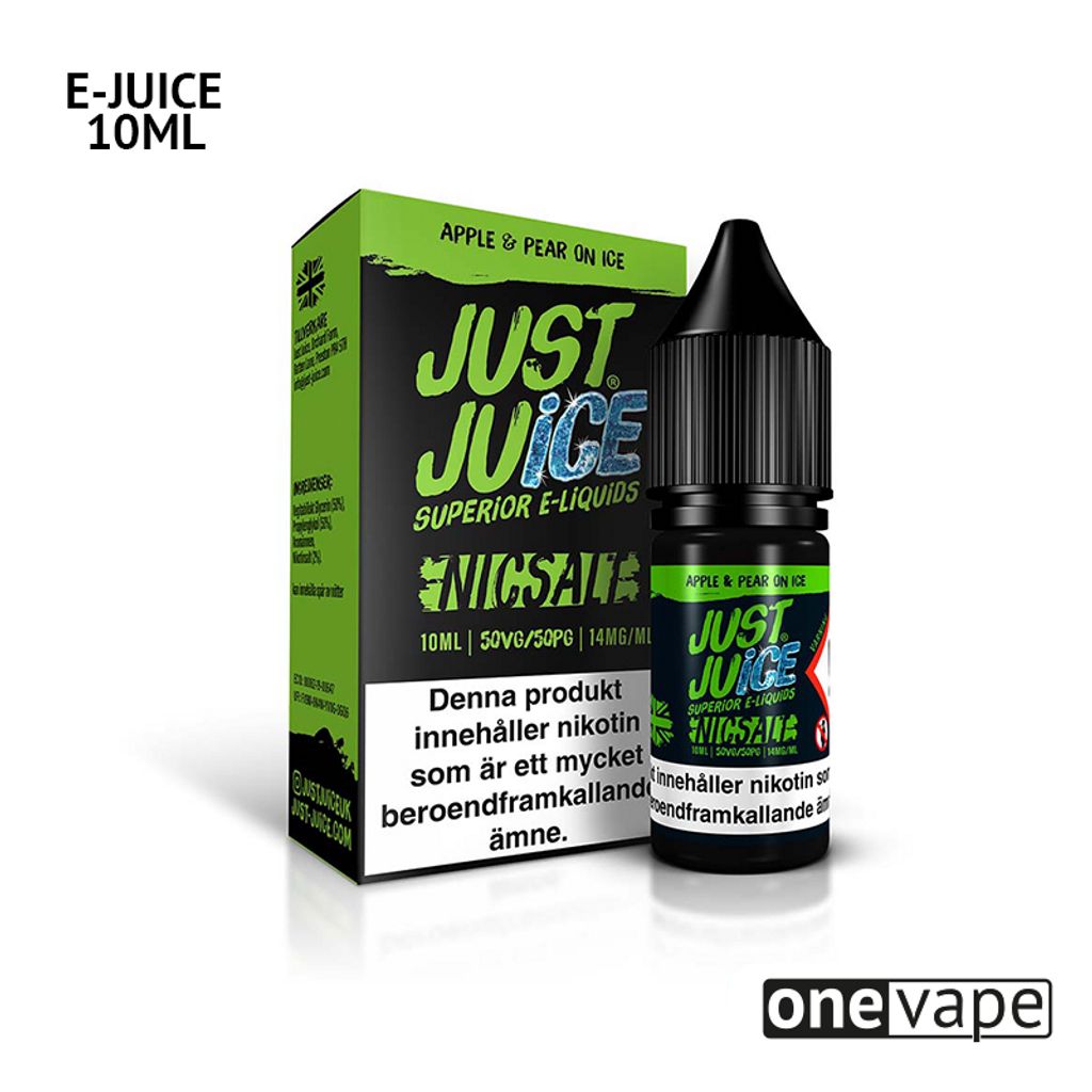 10ml E-juice med 14mg Nicsalt från Just Juice med smak av äpple, päron och cooling.