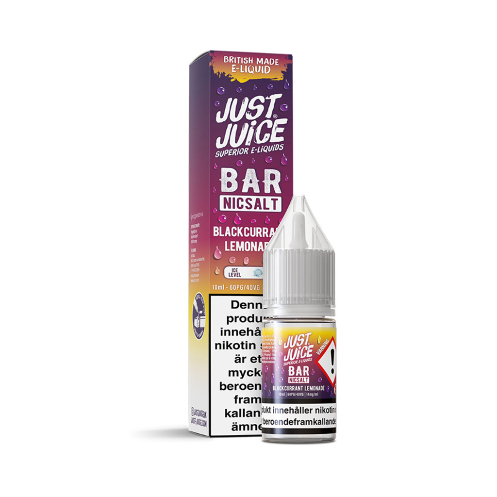 10ml E-juice med 14mg Nicsalt från Just Juice Bar med smak av svartvinbär och lemonad.