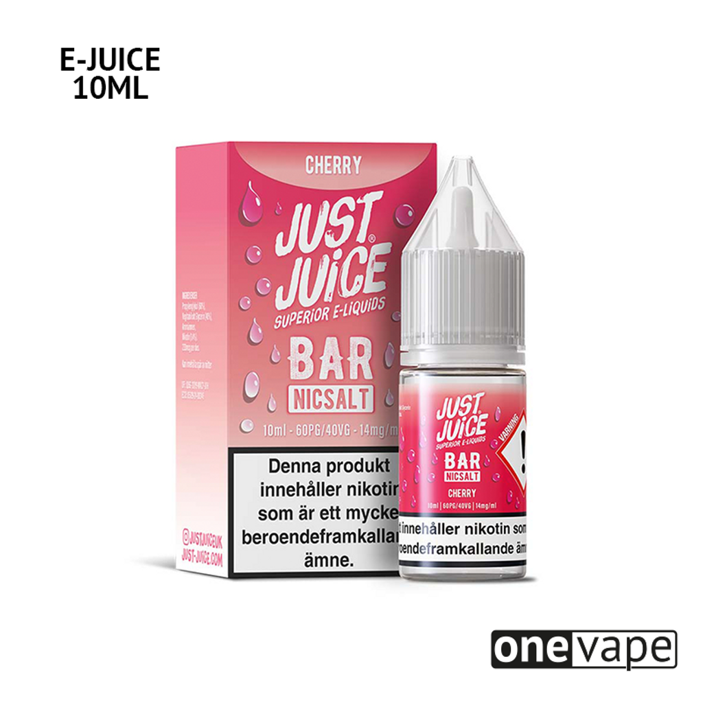 10ml E-juice med 14mg Nicsalt från Just Juice Bar med smak av körsbär.