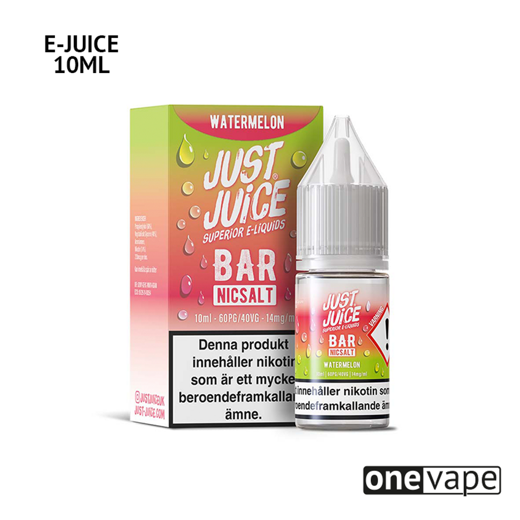 10ml E-juice med 14mg Nicsalt från Just Juice Bar med smak av saftig vattenmelon.