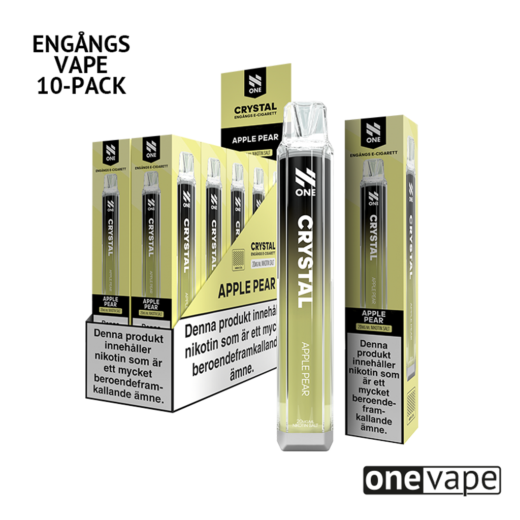 Storpack (10st) N One Crystal Engångsvape 20mg med smak av äpple och päron.
