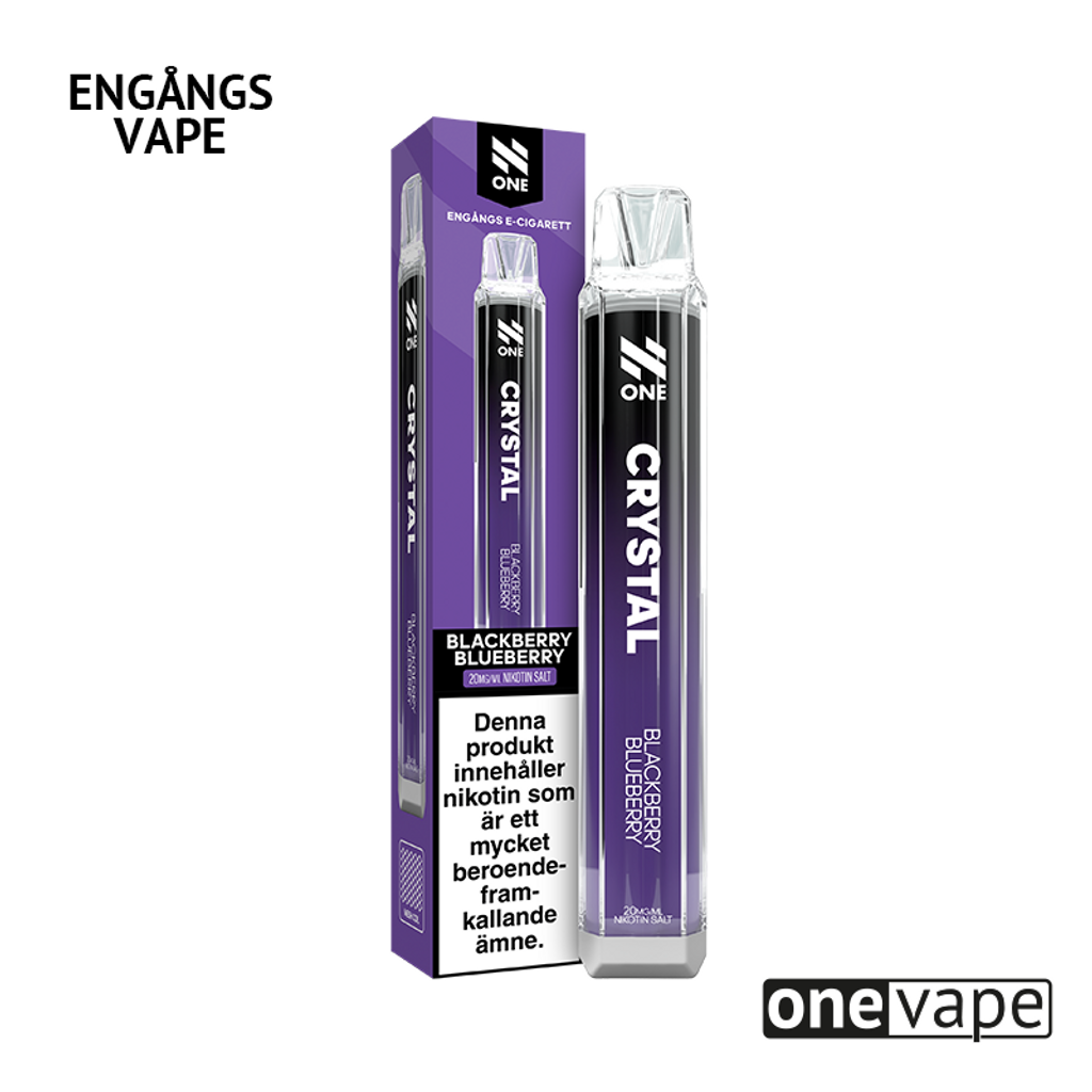 N One Crystal Engångsvape 20mg med smak av björnbär och blåbär.