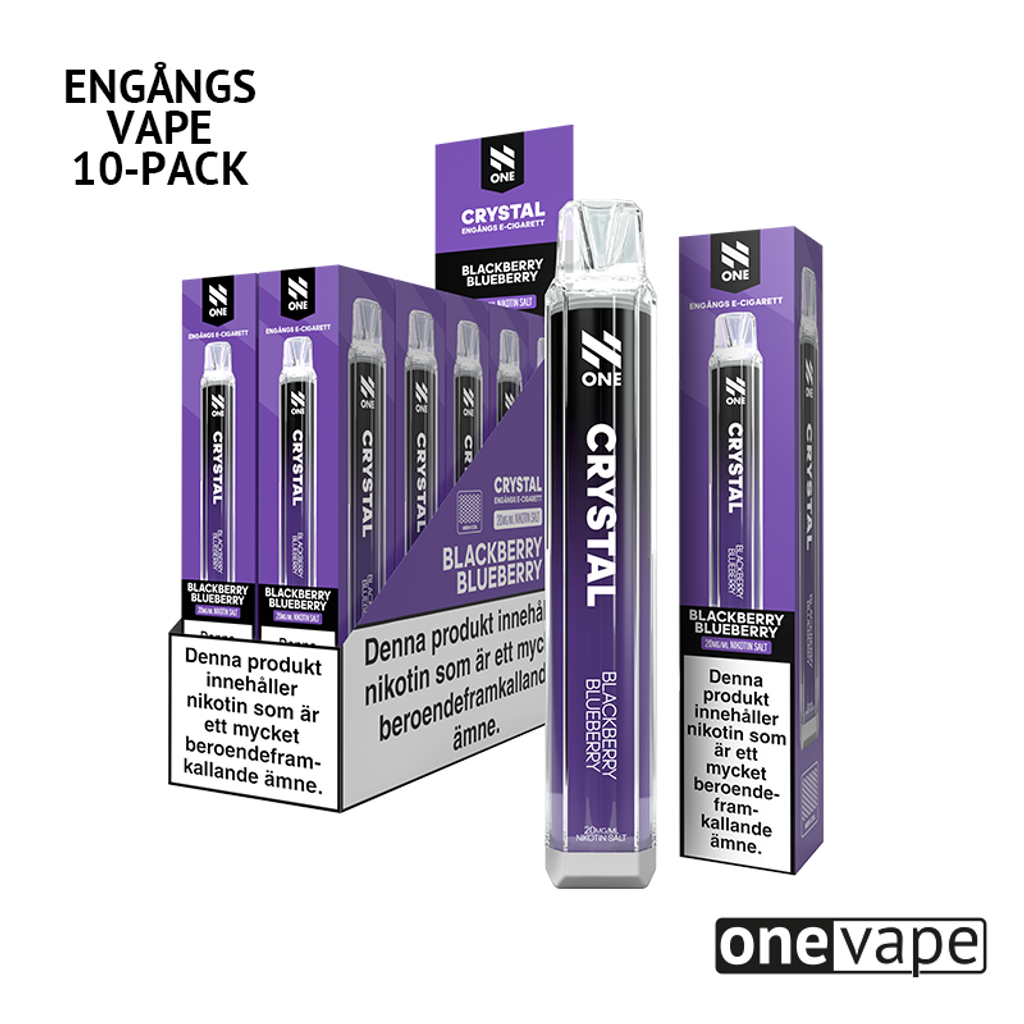 Storpack (10st) N One Crystal Engångsvape 20mg med smak av björnbär och blåbär.