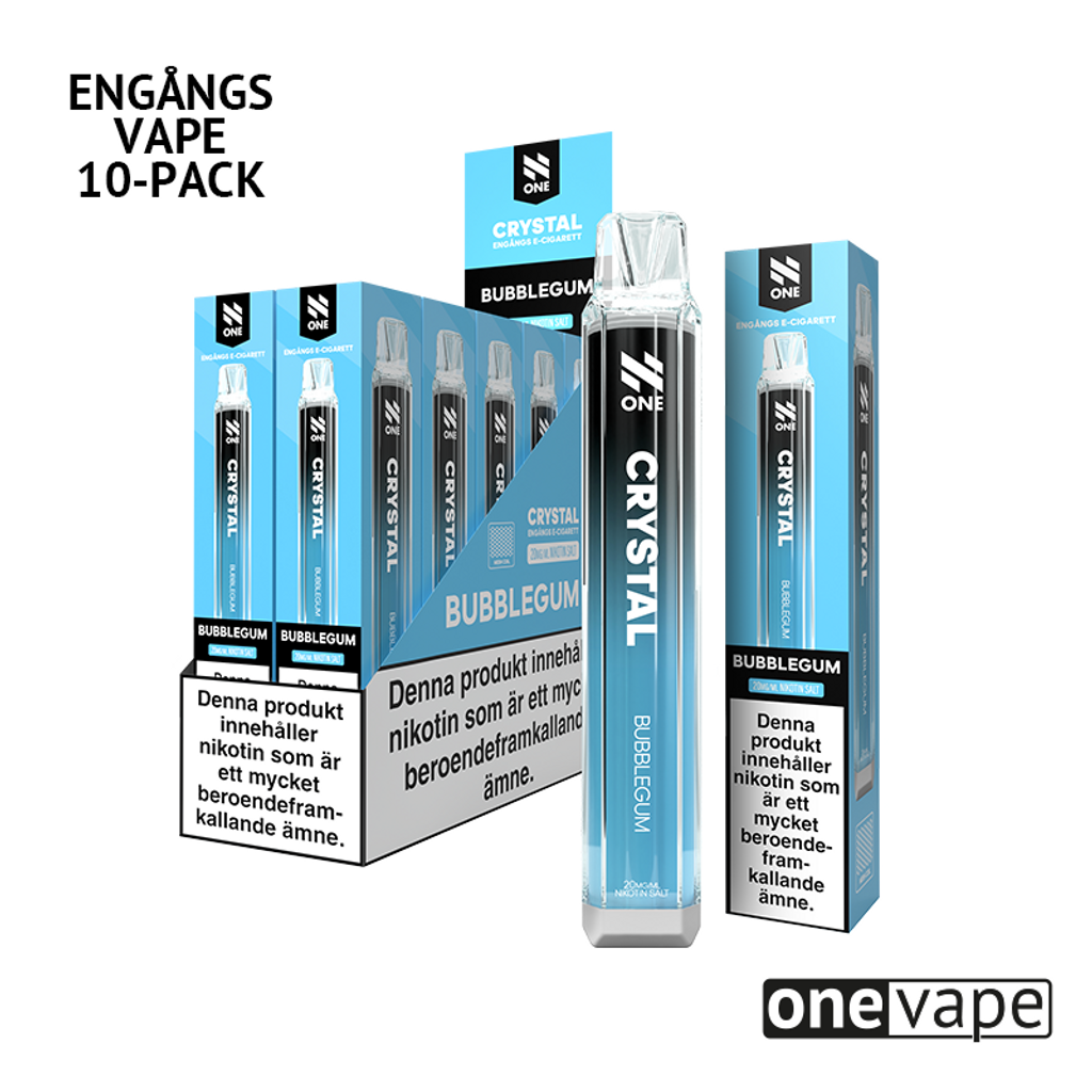 Storpack (10st) N One Crystal Engångsvape 20mg med smak av tuggummi.