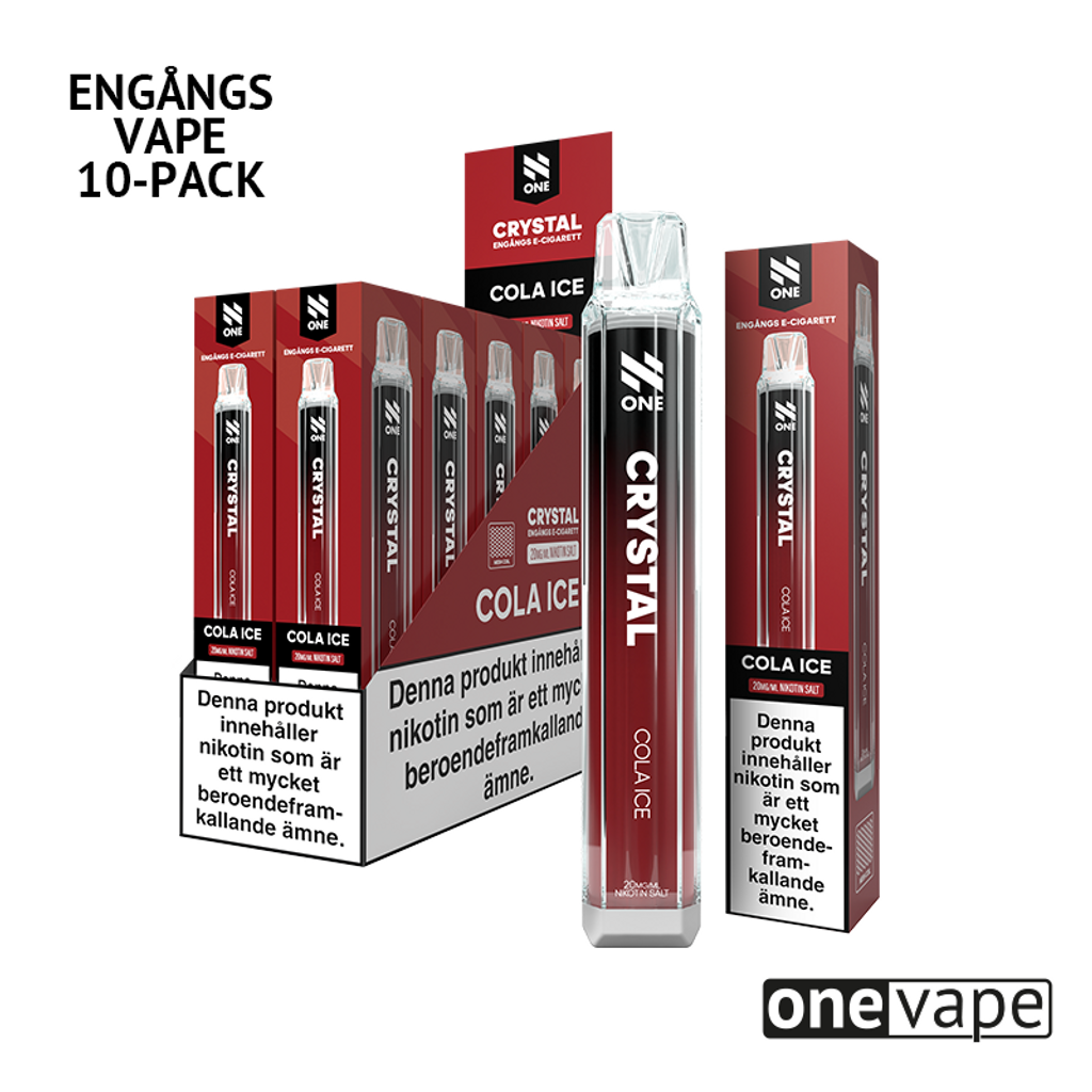 Storpack (10st) N One Crystal Engångsvape 20mg med smak av cola och cooling.