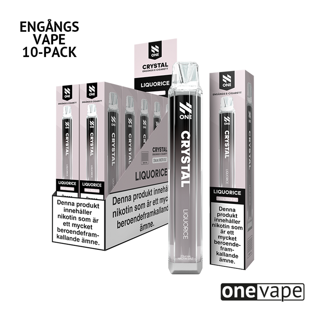 Storpack (10st) N One Crystal Engångsvape 20mg med smak av lakrits.