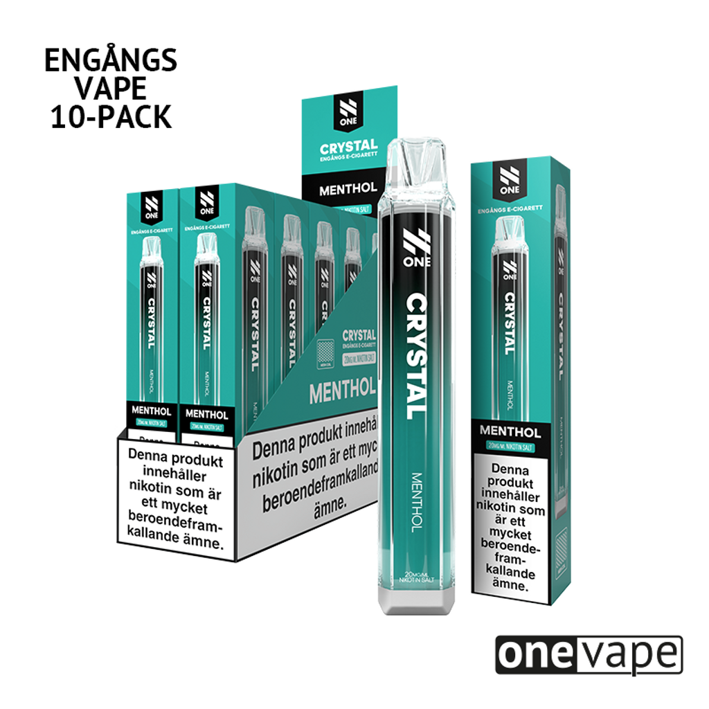 Storpack (10st) N One Crystal Engångsvape 20mg med smak av mentol.